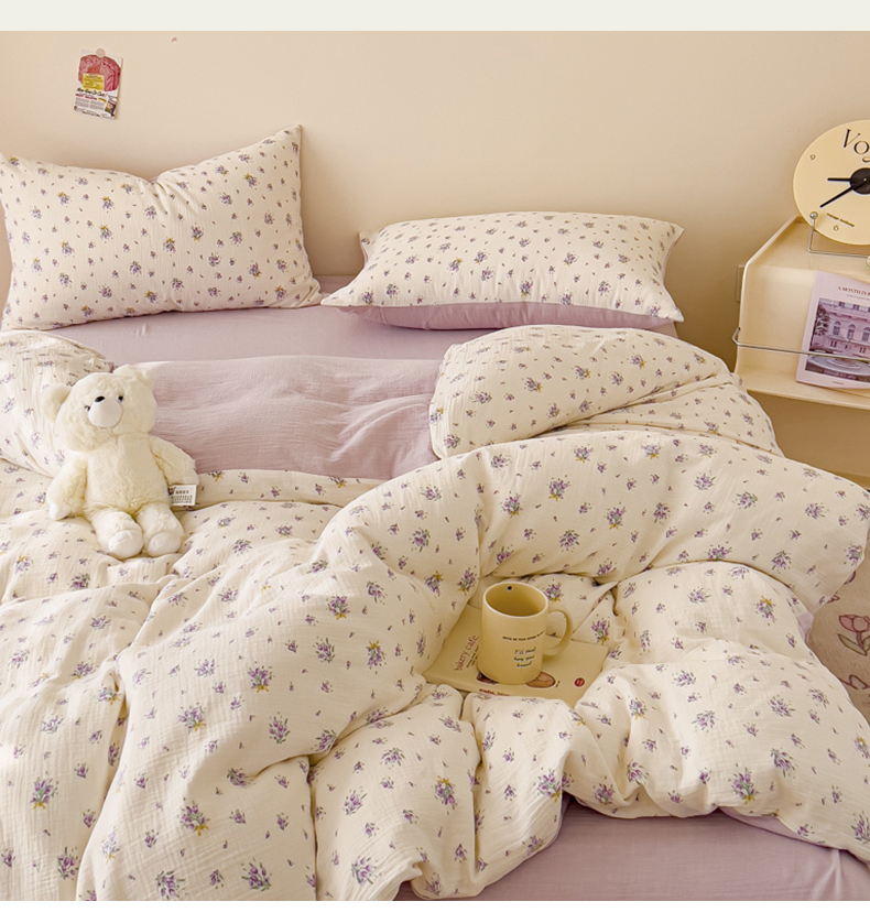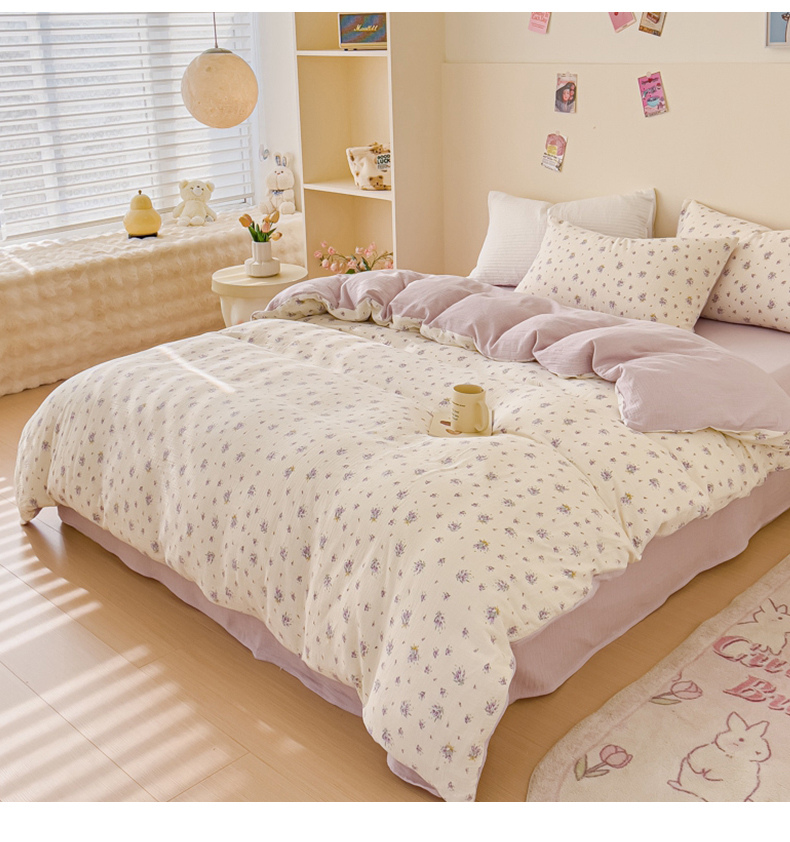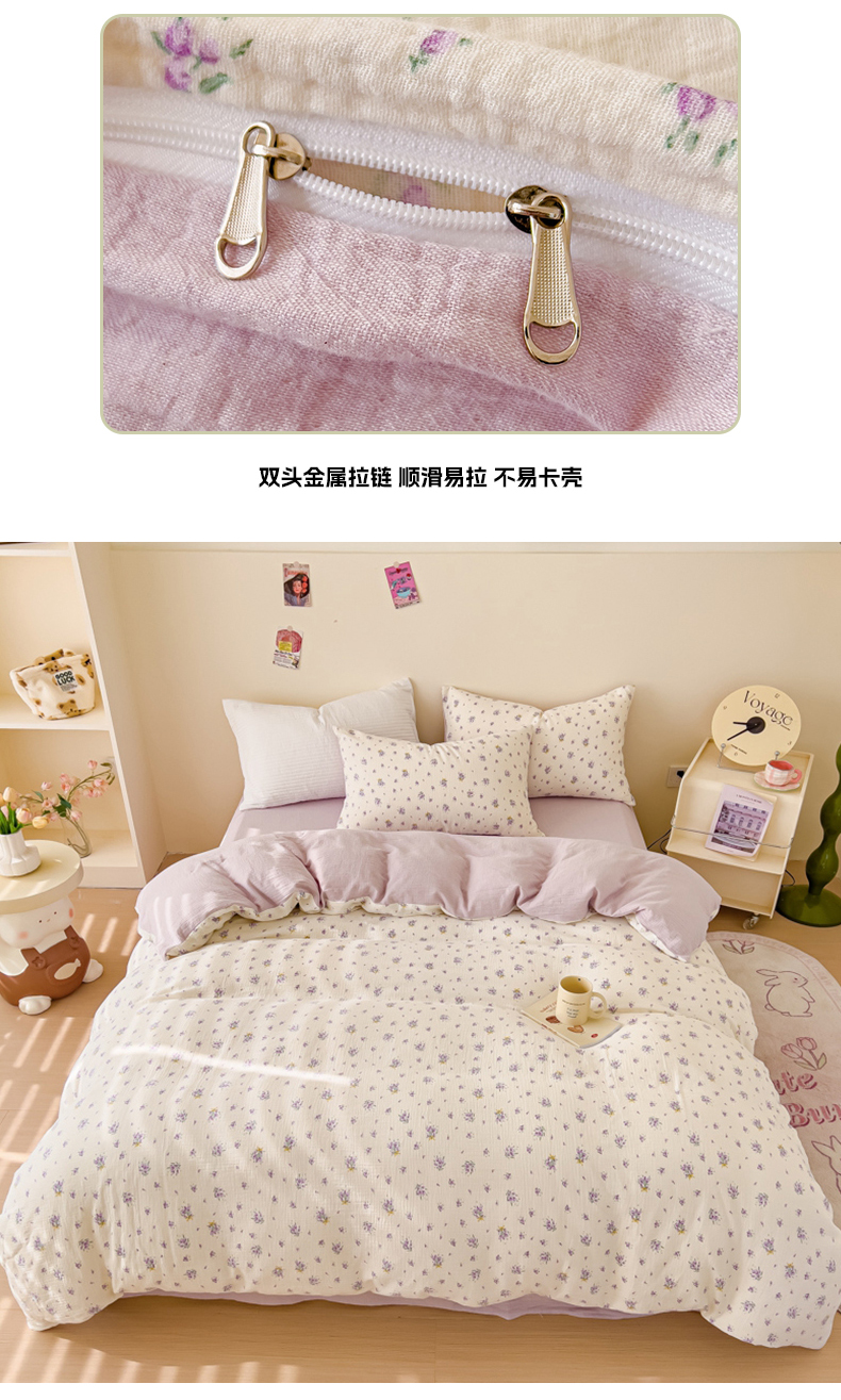 木楌 2025新款全棉A类皱皱纱印花四件套 紫萱