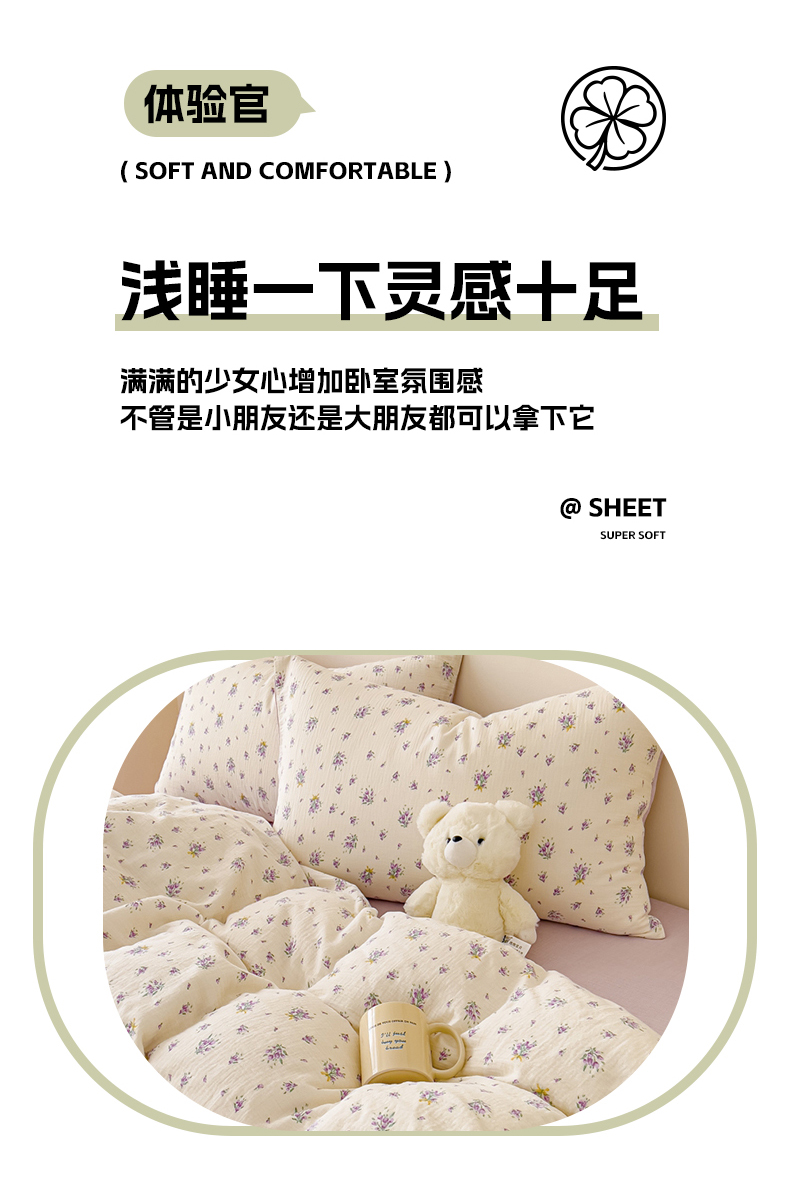 (总)木楌 2025新款全棉A类皱皱纱印花四件套,彼得熊,春泥,丁香-绿,丁香-紫,哈尼,海皮狗,涵雅,赫本熊,可心兰,可心咖,兰菲,美芽,木兰,奶油爱心,奶油波点,宁静,浅汐,沁香,微笑,星月,宾果熊,初颜,璎珞,花与兔,洛依,清新草莓,芮芮花,小彩蘑,小恐龙,小熊猫,幸运草,樱桃,知音,紫萱,小南国