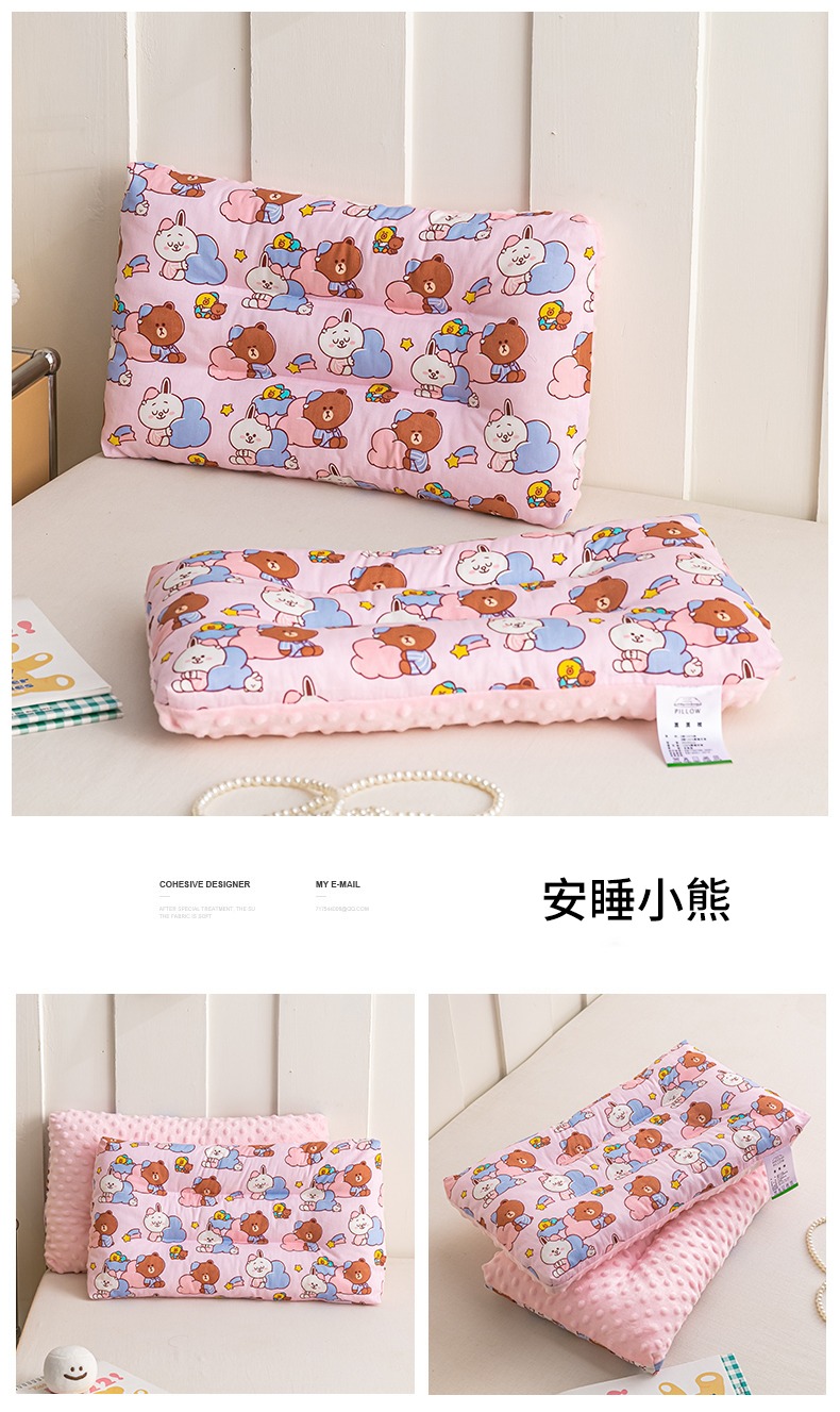 可思家纺 2024新款儿童全棉豆豆枕枕头枕芯 安睡小熊30*50cm一只