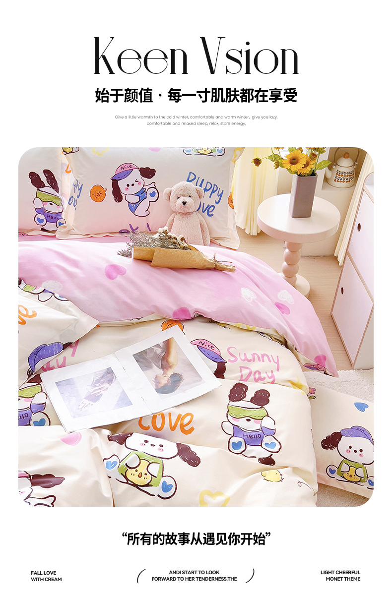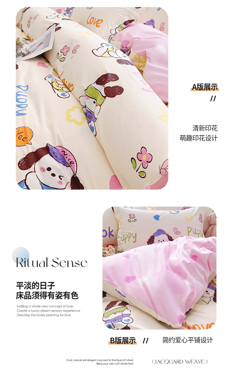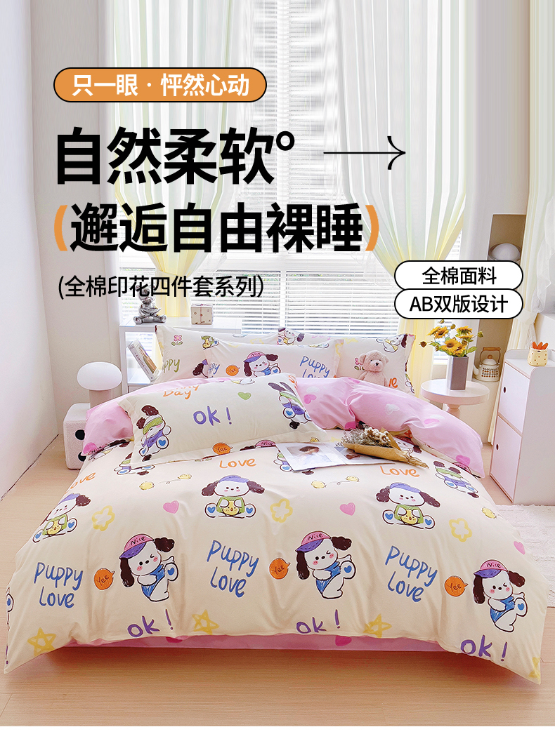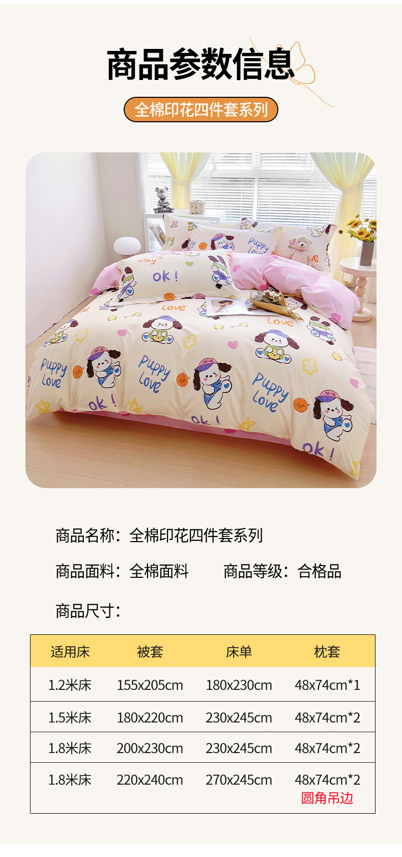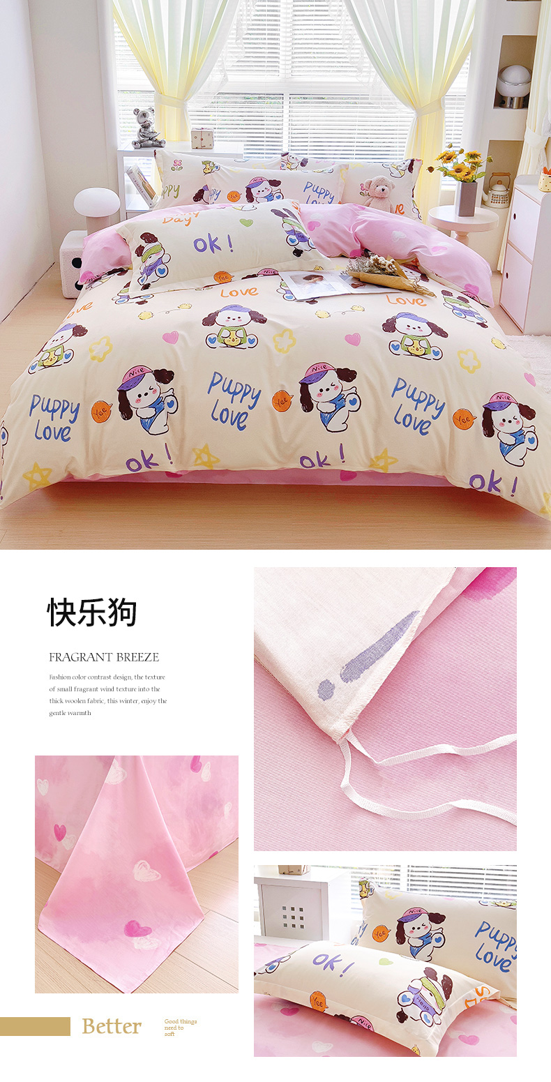 当前位置: 91家纺网 > 商品网购 > 床品套件 > 四件套 > 全棉普通四件套 > 锦罗绣 2024新款13372印花全棉四件套 快乐狗