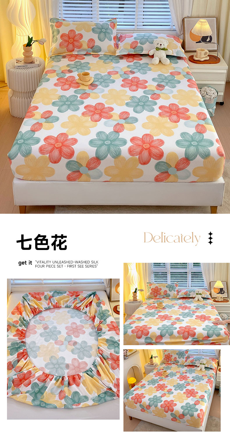 商品名称:金丝兔 2025新款植物羊绒磨毛单床笠 七色花