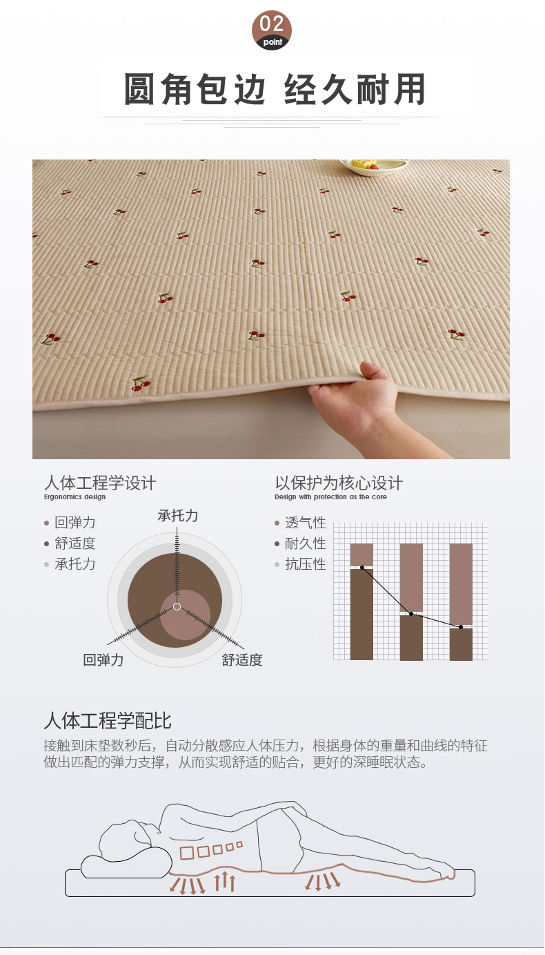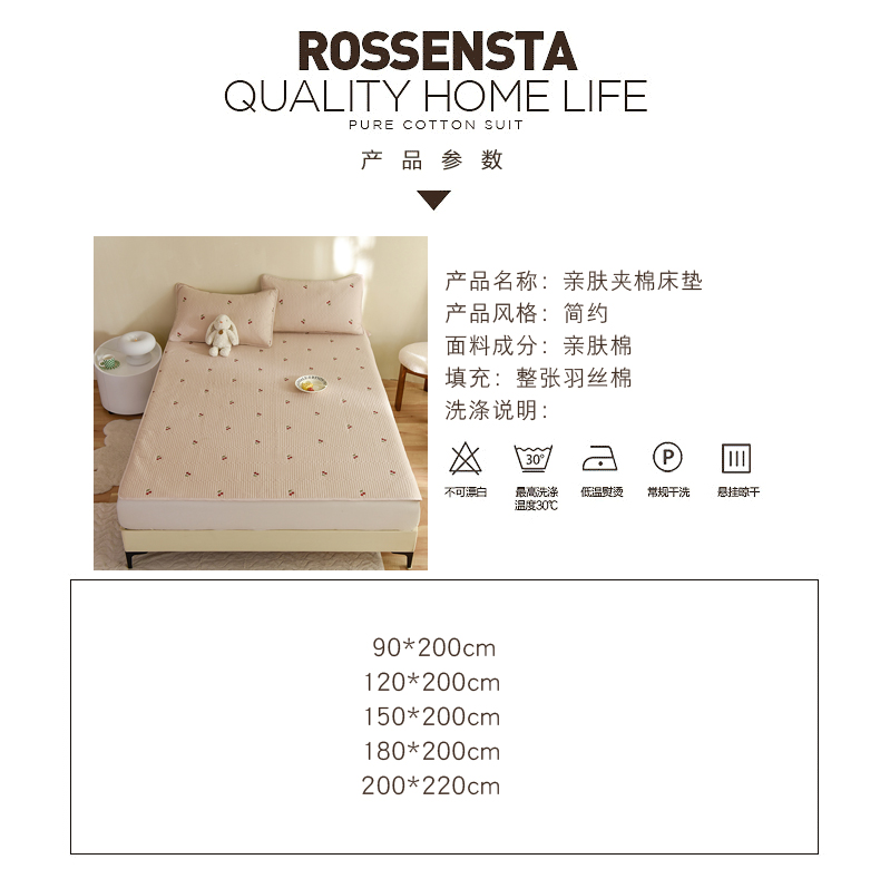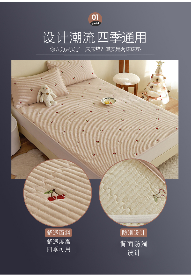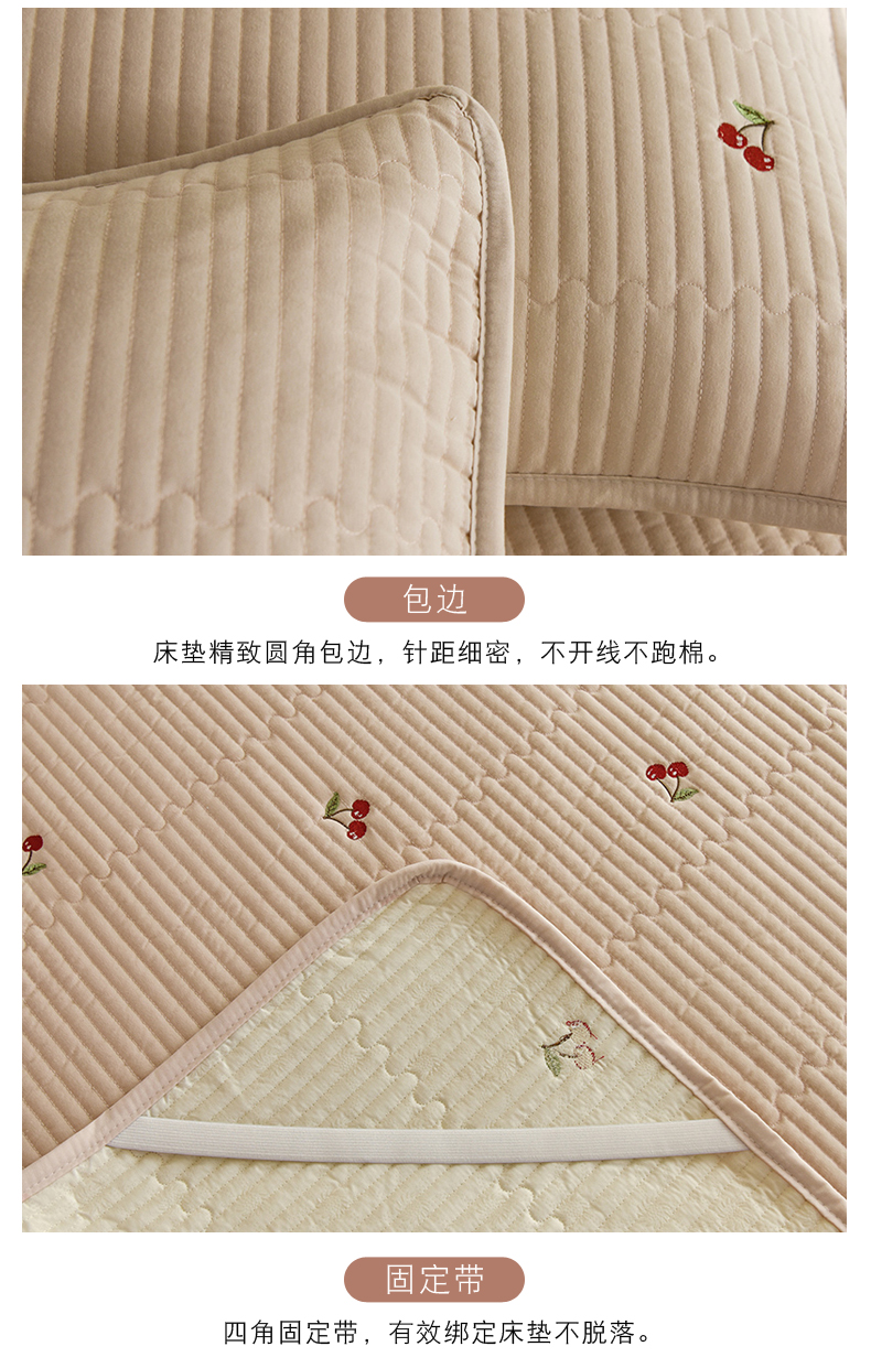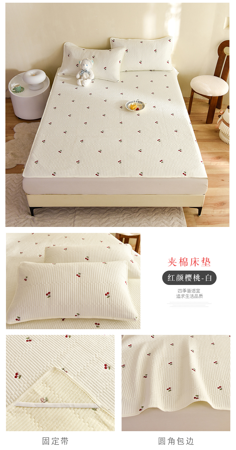 商品名称:美达家纺2025新品纯色刺绣水洗棉夹棉床垫 红颜樱桃-白