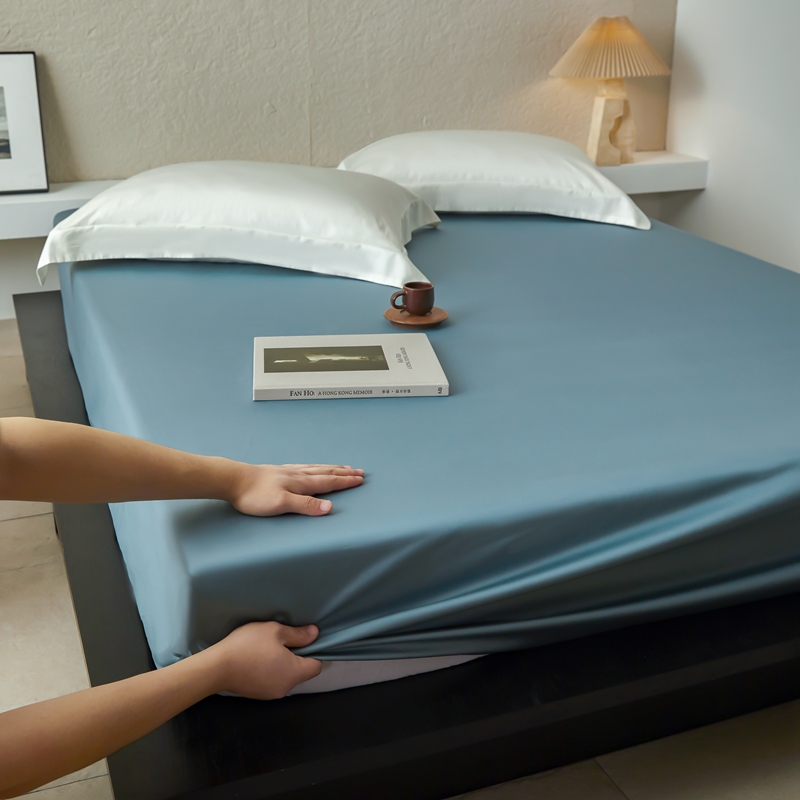 商品名称:鹿班家居 2024新款100S长绒棉纯色单品床笠(场景二) 绒丝绿