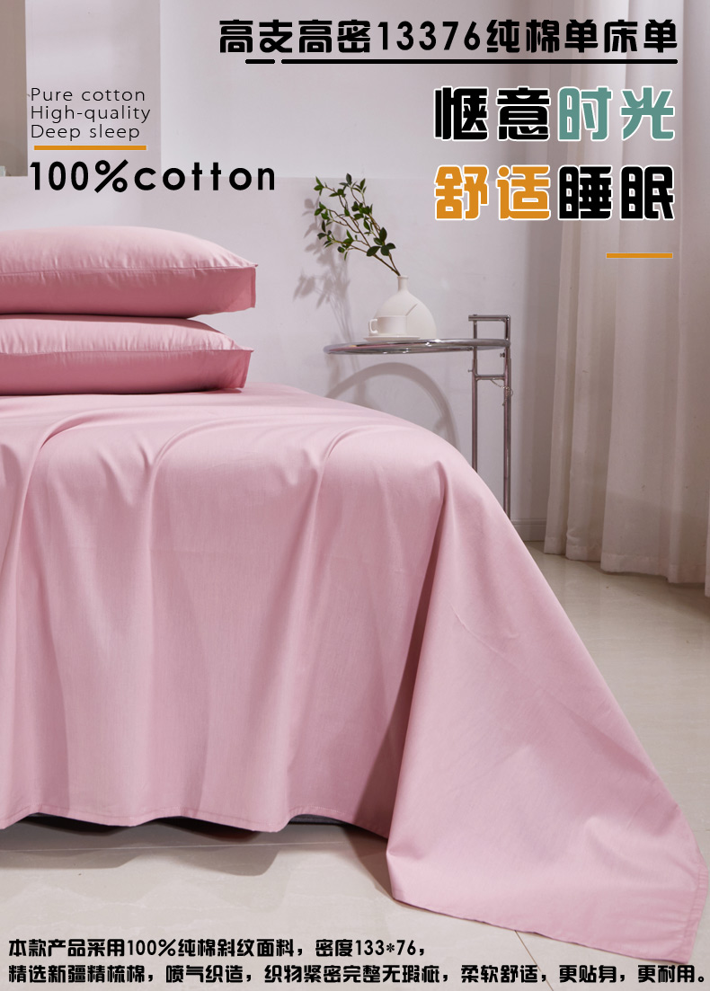 晶缦家纺 2024新款喷气全棉13376纯棉斜纹纯色多规格四件套和单品-沐色系列 单床单 沐色-脏脏粉