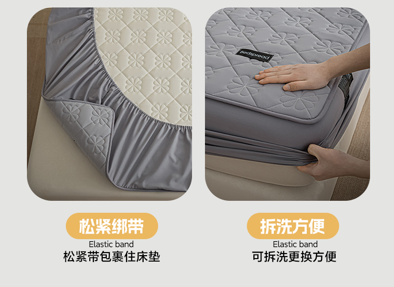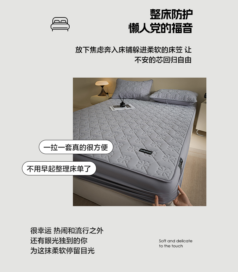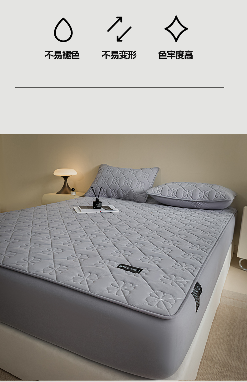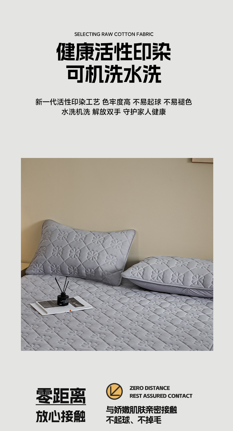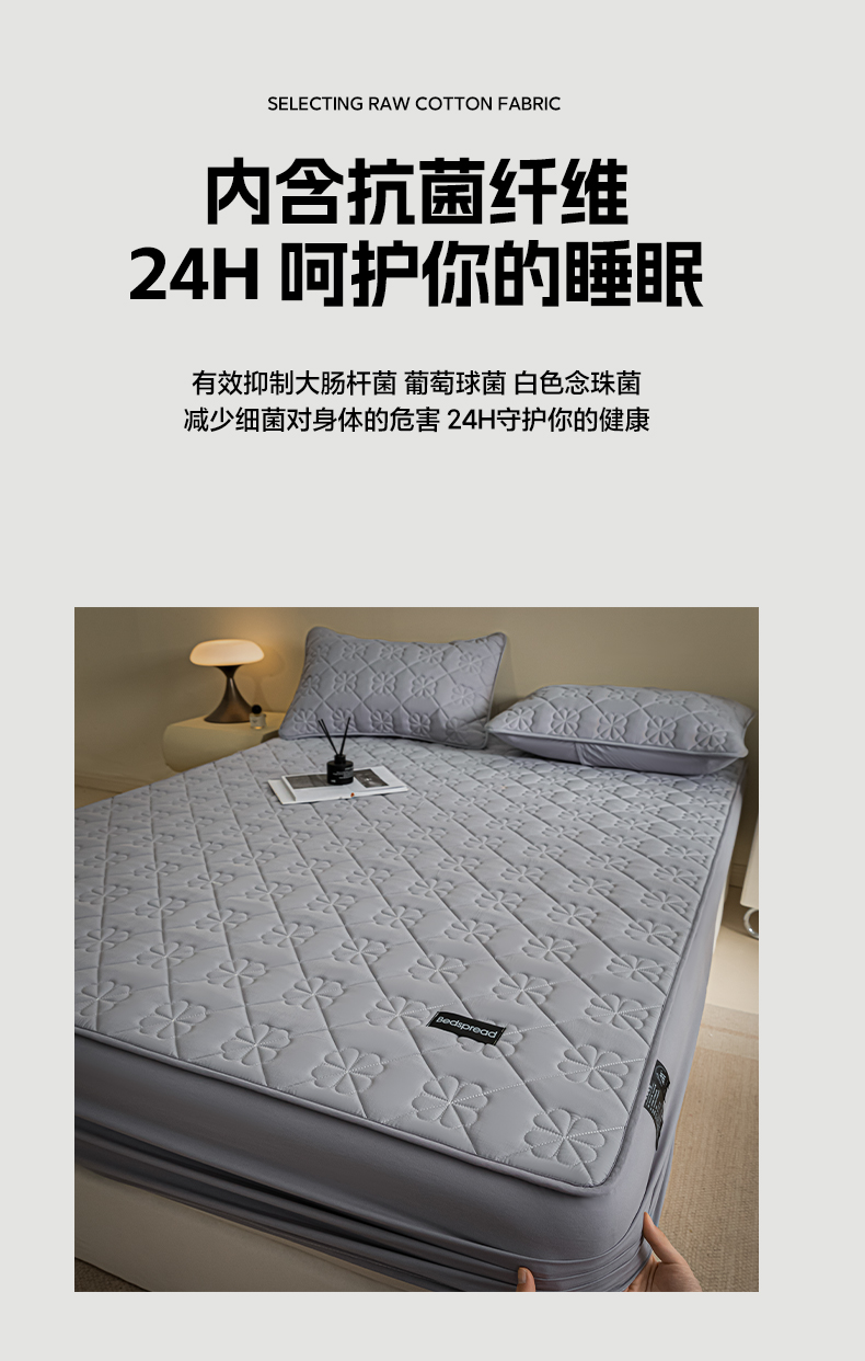 芬晴家纺 2024新款A类全棉水洗棉抗菌床笠夹棉床笠奥兰 奥兰-星灰