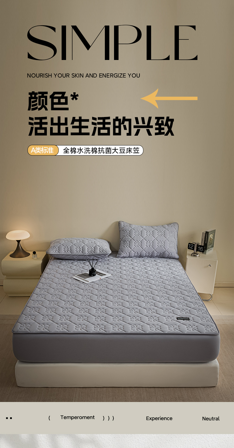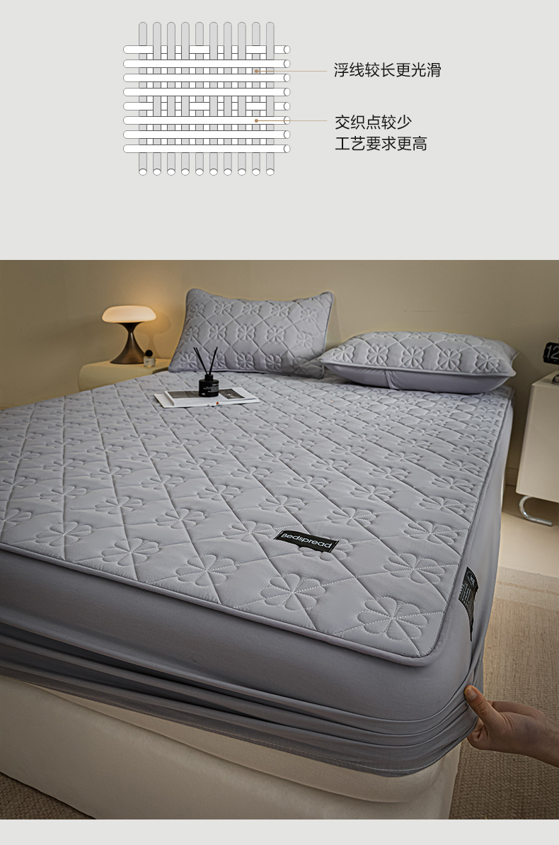 • 91家纺网 家纺一手货源 找家纺 芬晴家纺 2024新款A类全棉水洗棉抗菌床笠夹棉床笠奥兰 奥兰-星灰