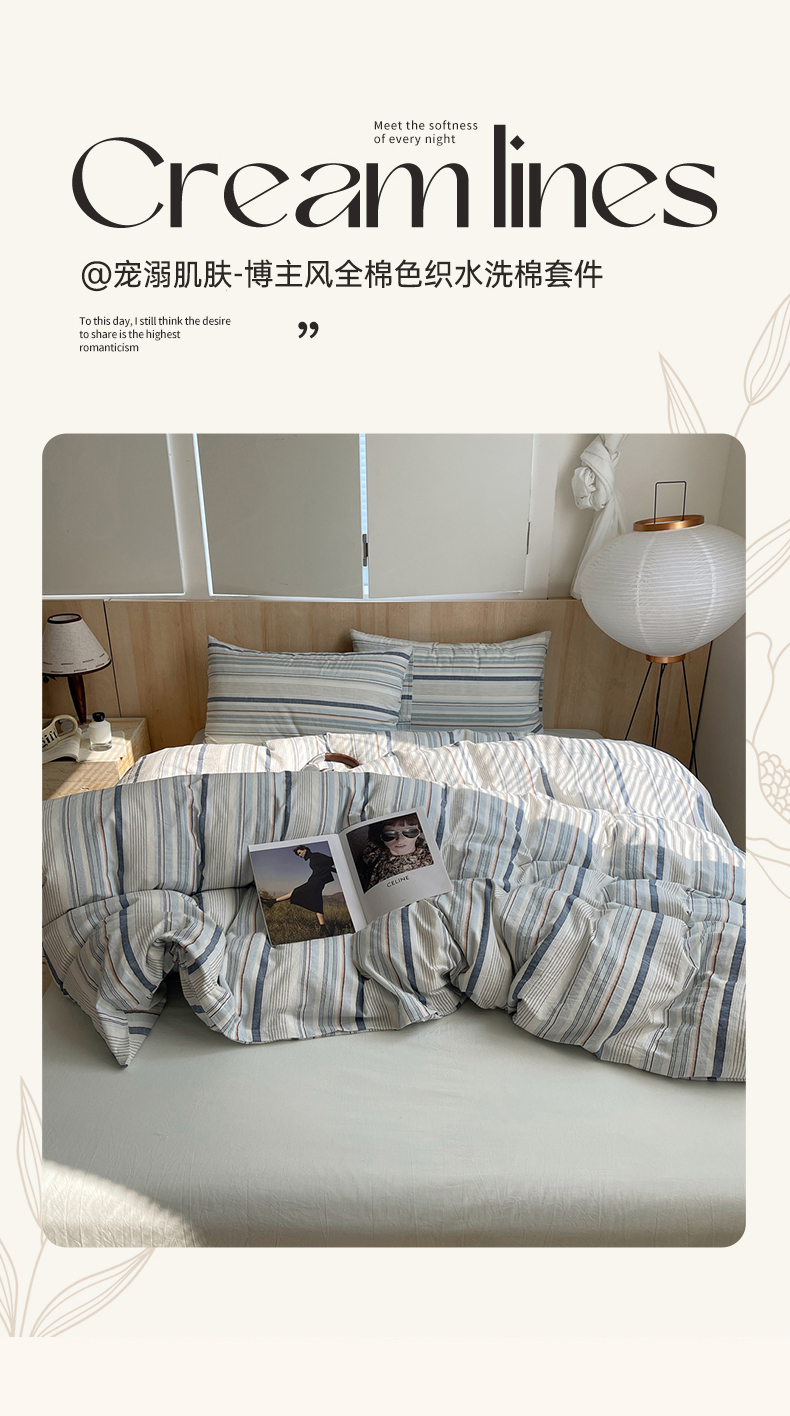 当前位置: 91家纺网 > 商品网购 > 床品套件 > 四件套 > 全棉普通四件套 > 艾咪 2024新款博主风全棉色织水洗棉四件套 西蒙兰