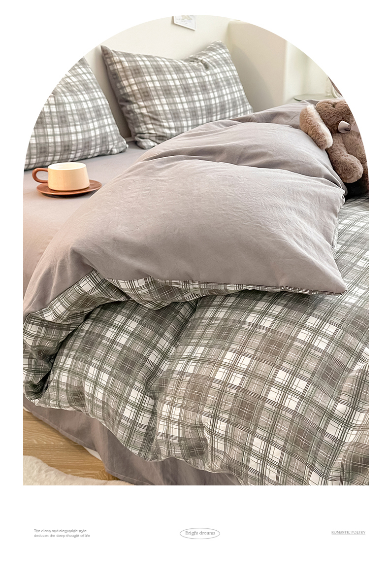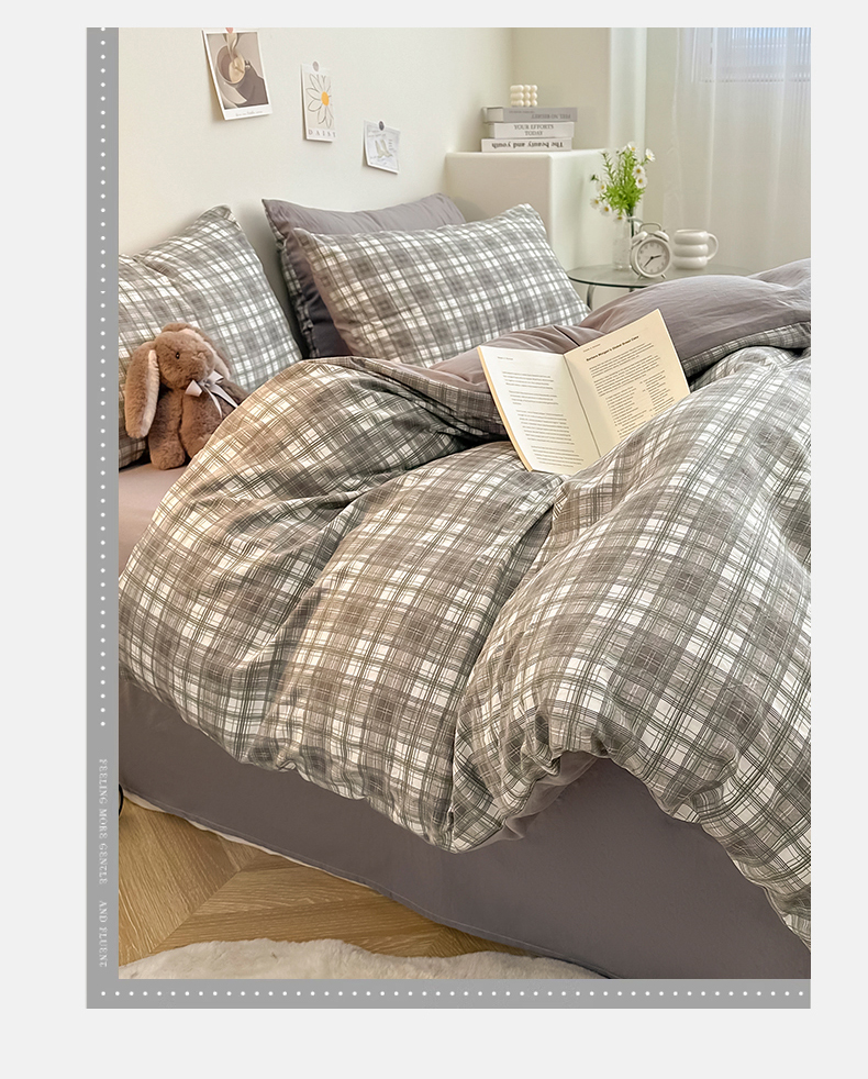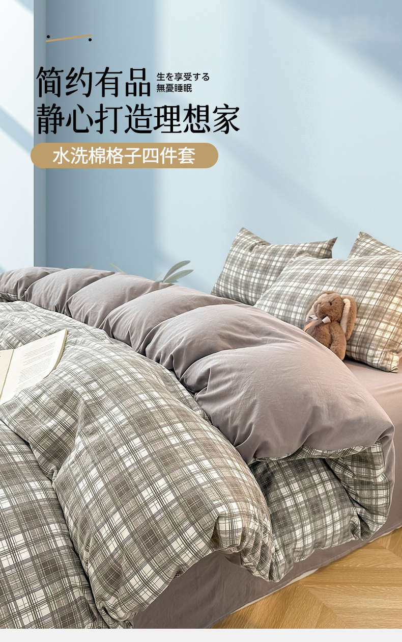 当前位置: 91家纺网 > 商品网购 > 床品套件 > 四件套 > 水洗棉四件套 > 古吉梦 2024新款水洗棉小清新印花格子系列四件套 G-可可灰+中灰