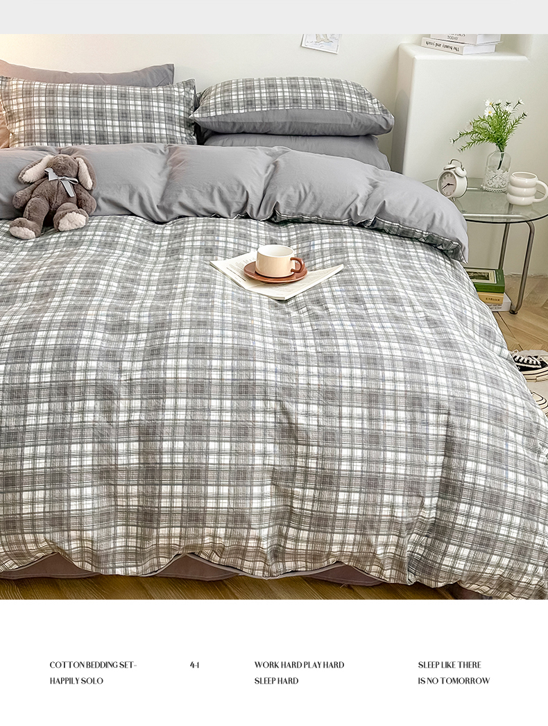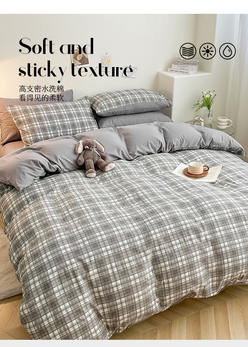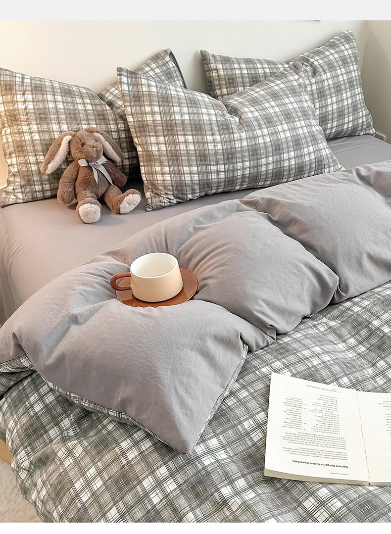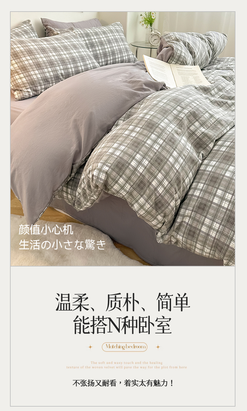 当前位置: 91家纺网 > 商品网购 > 床品套件 > 四件套 > 水洗棉四件套 > 古吉梦 2024新款水洗棉小清新印花格子系列四件套 G-可可灰+中灰