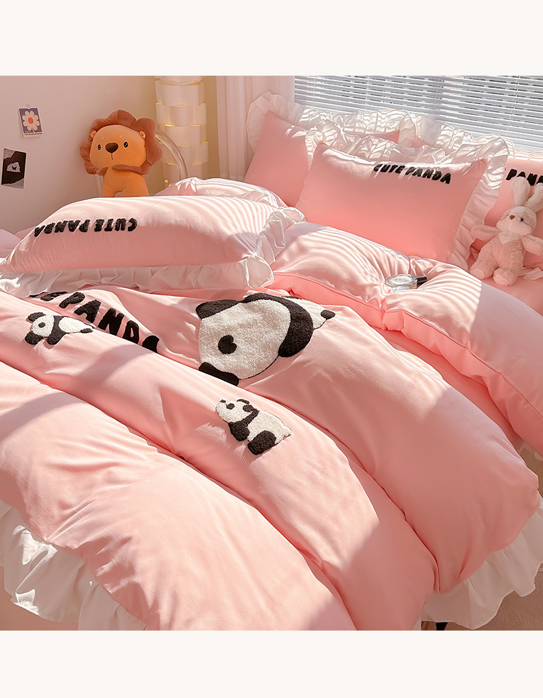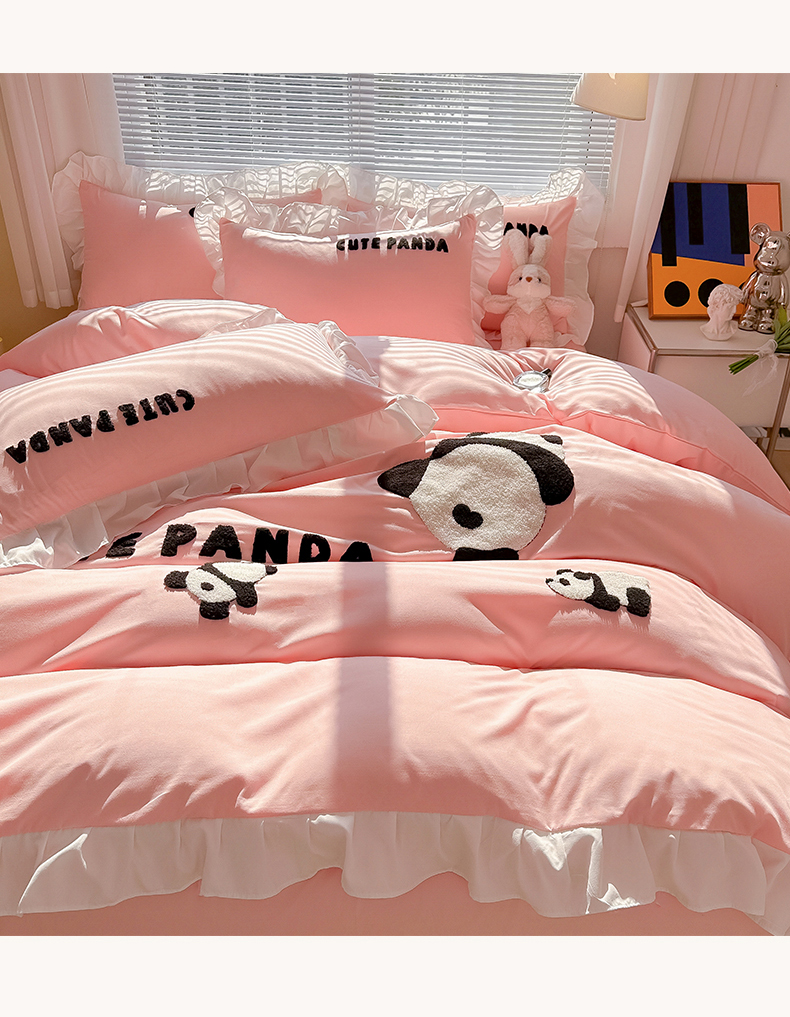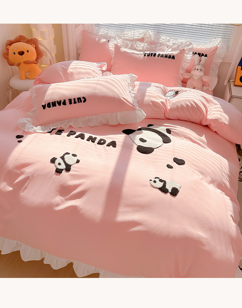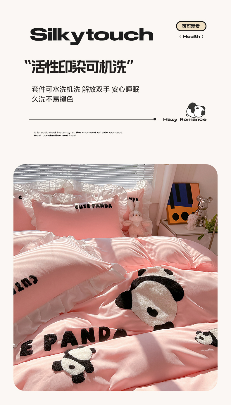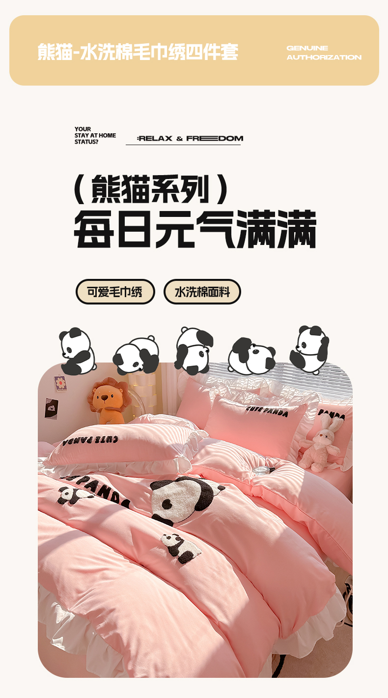 (总)韩都家居 2025新款牛奶绒毛巾绣四件套-系列一,熊猫懒懒,蛋糕猫-粉格,蛋糕猫-兰格,欢乐狗,腊肠狗,圣诞树,小白鸭