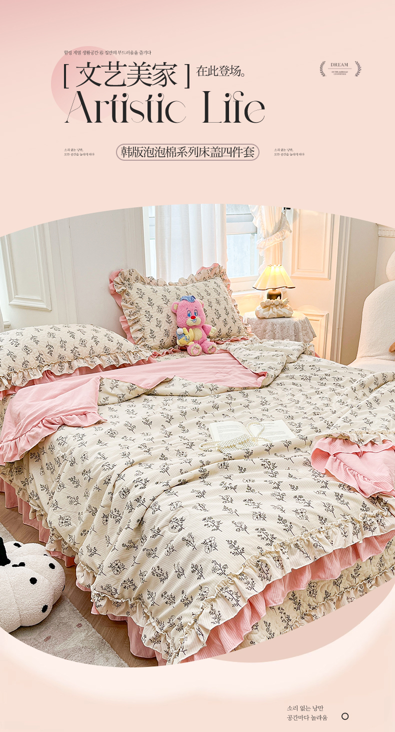 恒爱家纺 2024新款韩版泡泡棉床盖系列四件套 花语