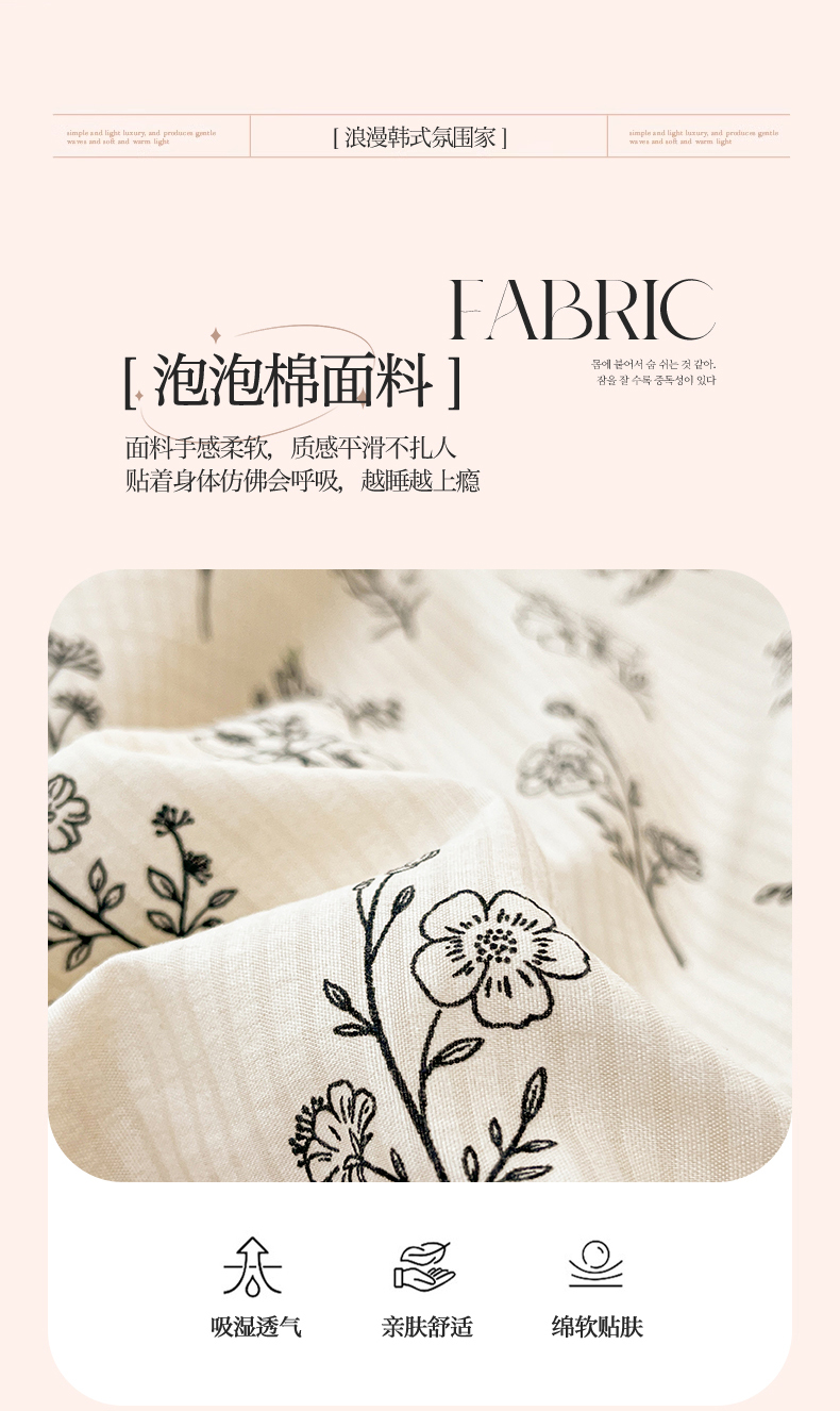 商品名称:恒爱家纺 2024新款韩版泡泡棉床盖系列四件套 花语