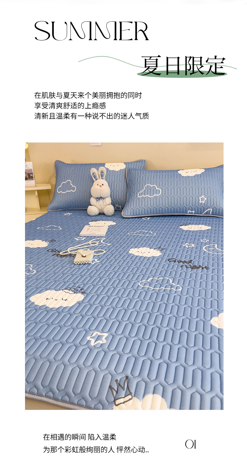 (总)希廷顿 2024新款乳胶凉席印花床裙款,Luck熊,云之恋,可爱熊,向阳花,墨绿色,天蓝色,小煤球,幸运星,心相印,深蓝色,熊猫攀竹,粉玉色,绅士灰,绽放玫瑰,草莓熊,萝卜兔,香芋紫