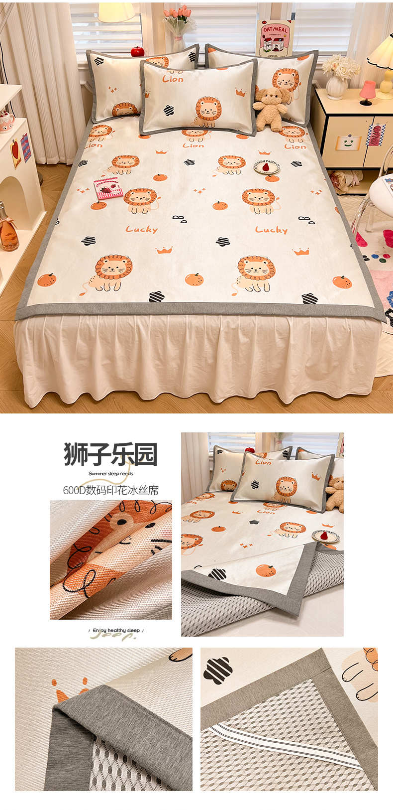 商品名称:懒猫 2024新款600D数码印花冰丝凉席 狮子乐园