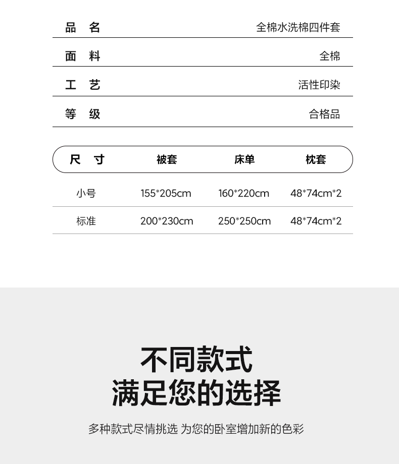商品名称:(总)优姿家纺 2024新款全棉色织水洗棉四件套