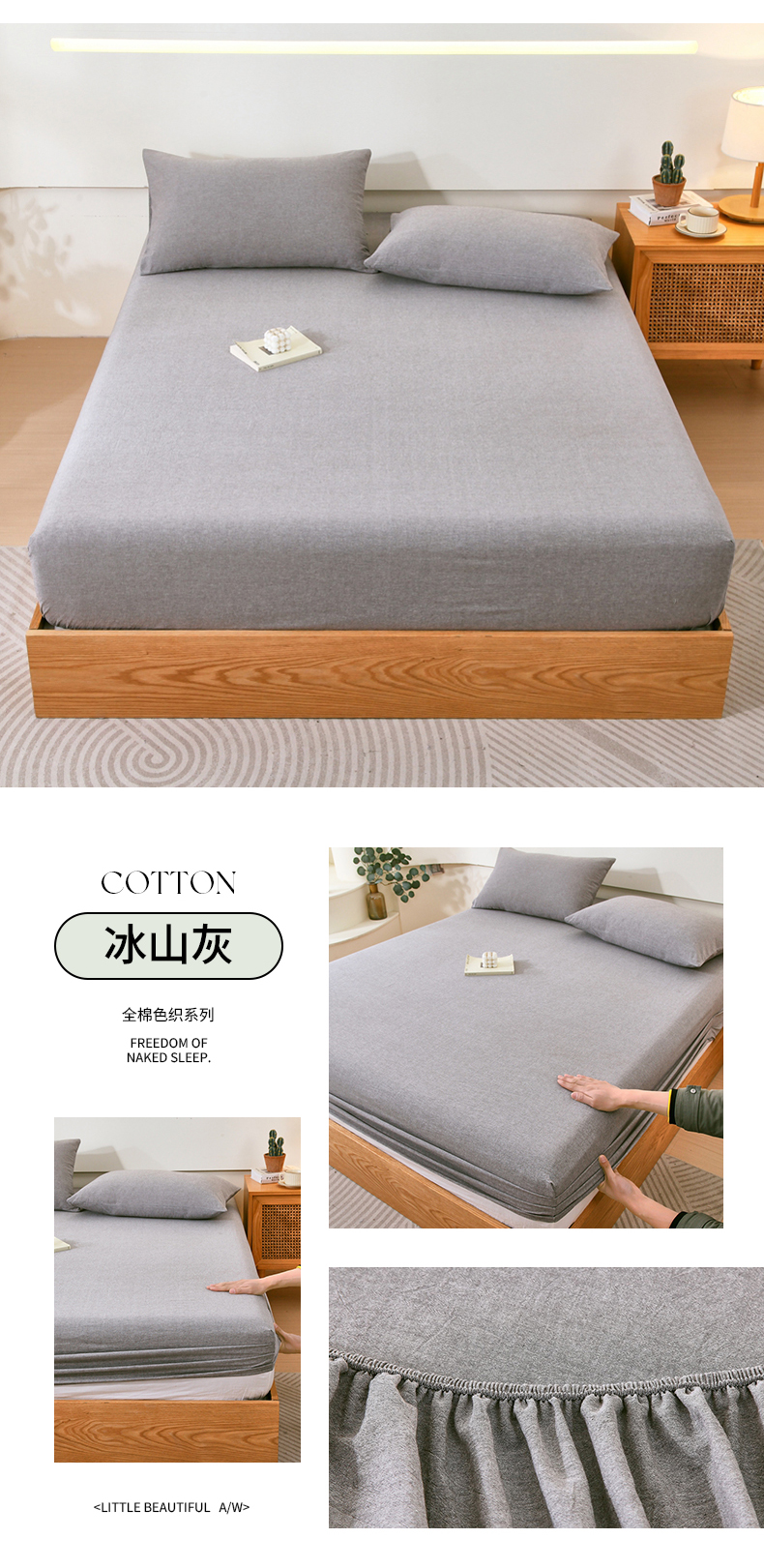 商品名称:一禾2024新款A类亲肤舒适全棉色织单品系列-单床笠 冰山灰