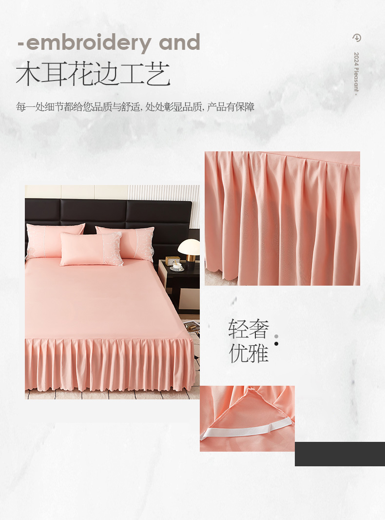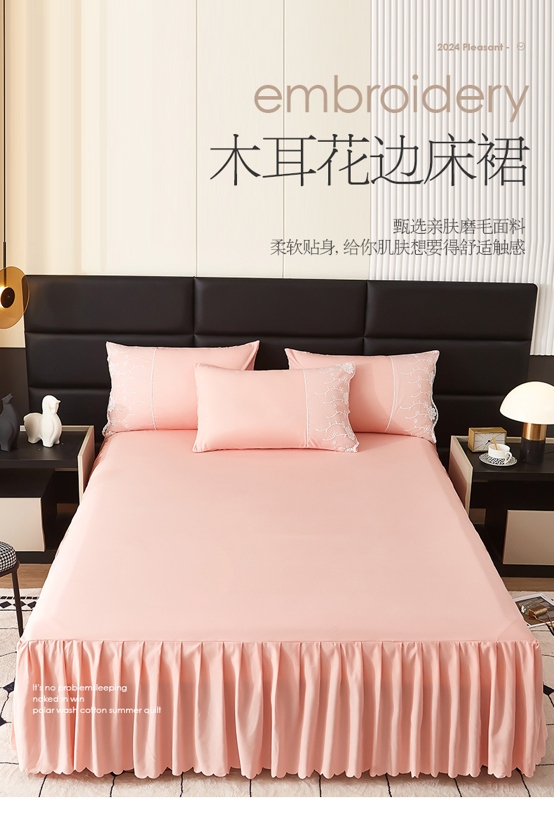 莉莉安 2025年新款木耳花边亲肤磨毛床裙-蒂欧系列 蒂欧-太妃玉