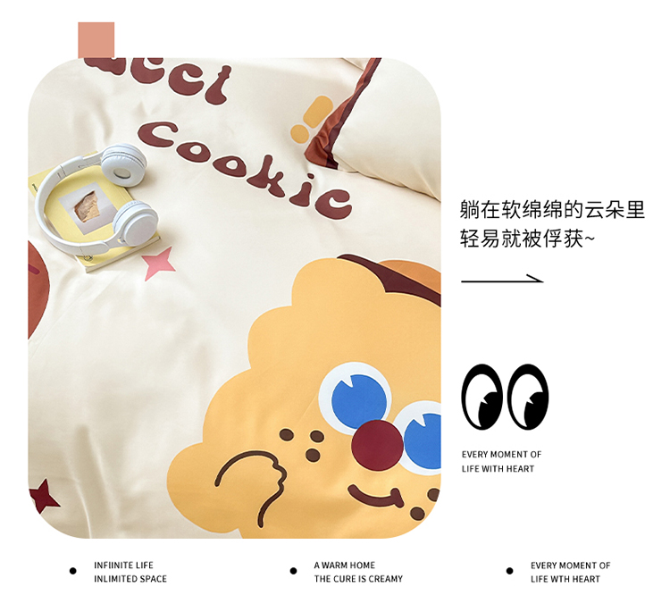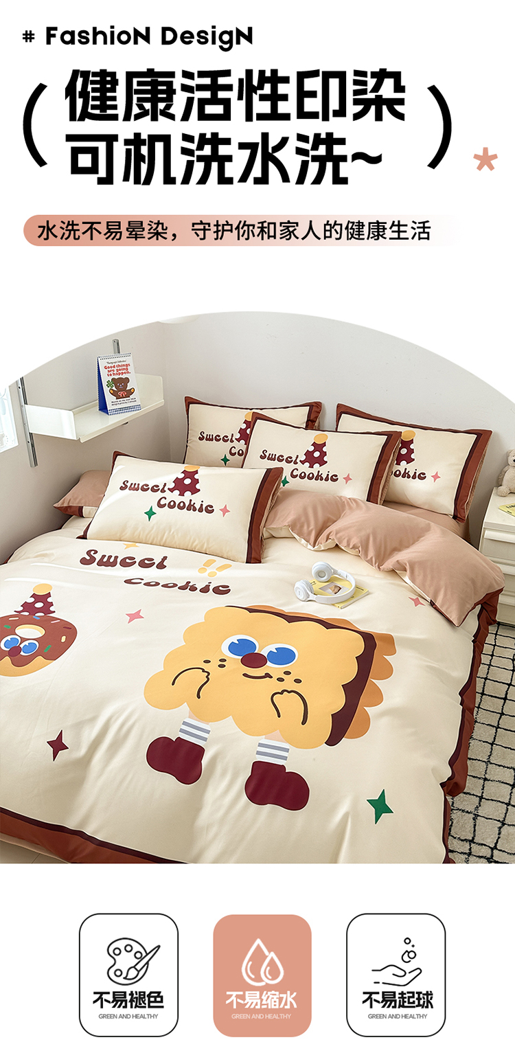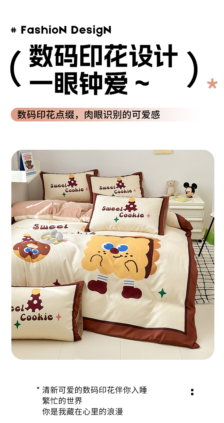 色鬼布艺 2024新款水洗真丝数码印花四件套 饼干