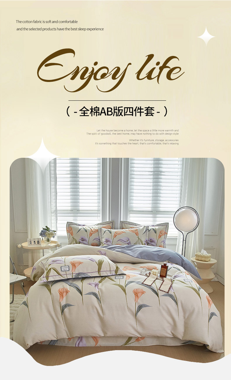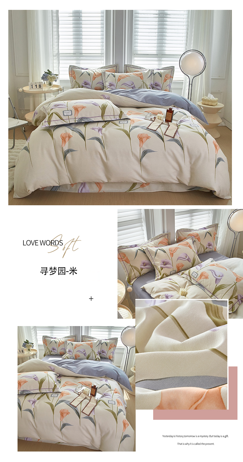 商品名称:金纱玉纺家纺 2024新款加厚AB版四件套 寻梦园-米