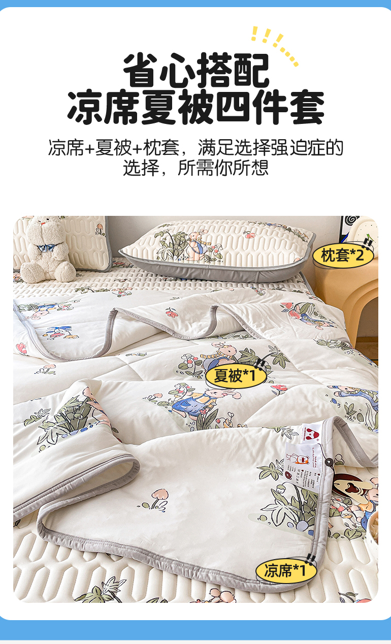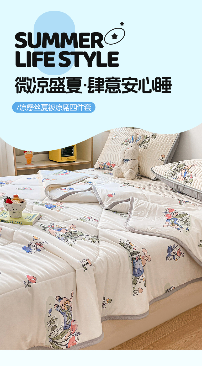 当前位置: 91家纺网 > 商品网购 > 床品套件 > 四件套 > 夏被四件套 > 布卢姆床垫 2025新款A类凉感丝数码印花夏被凉席四件套 兔子先生