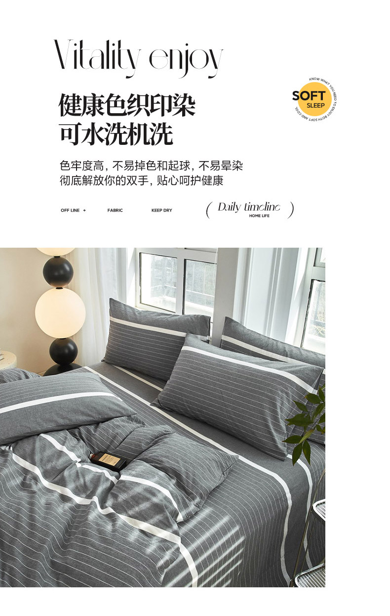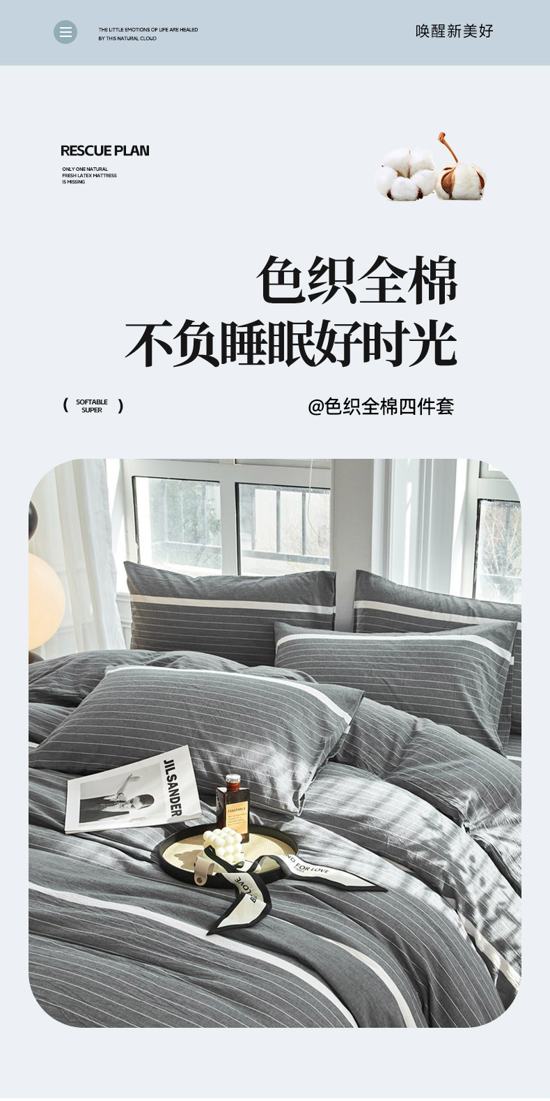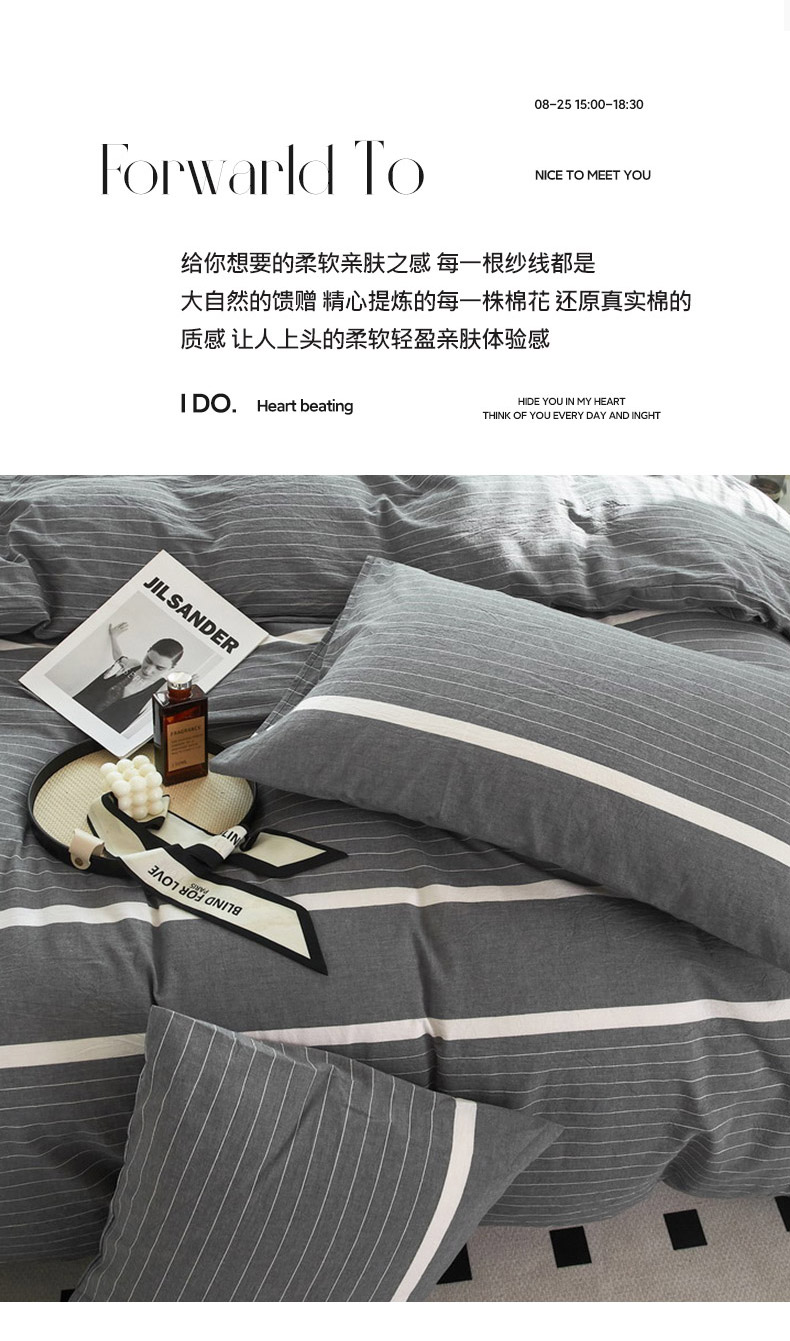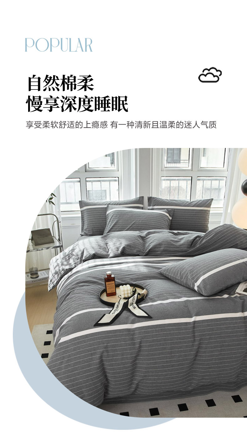 商品名称:金纱玉纺家纺 2024新款色织全棉水洗棉四件套 多拉-灰