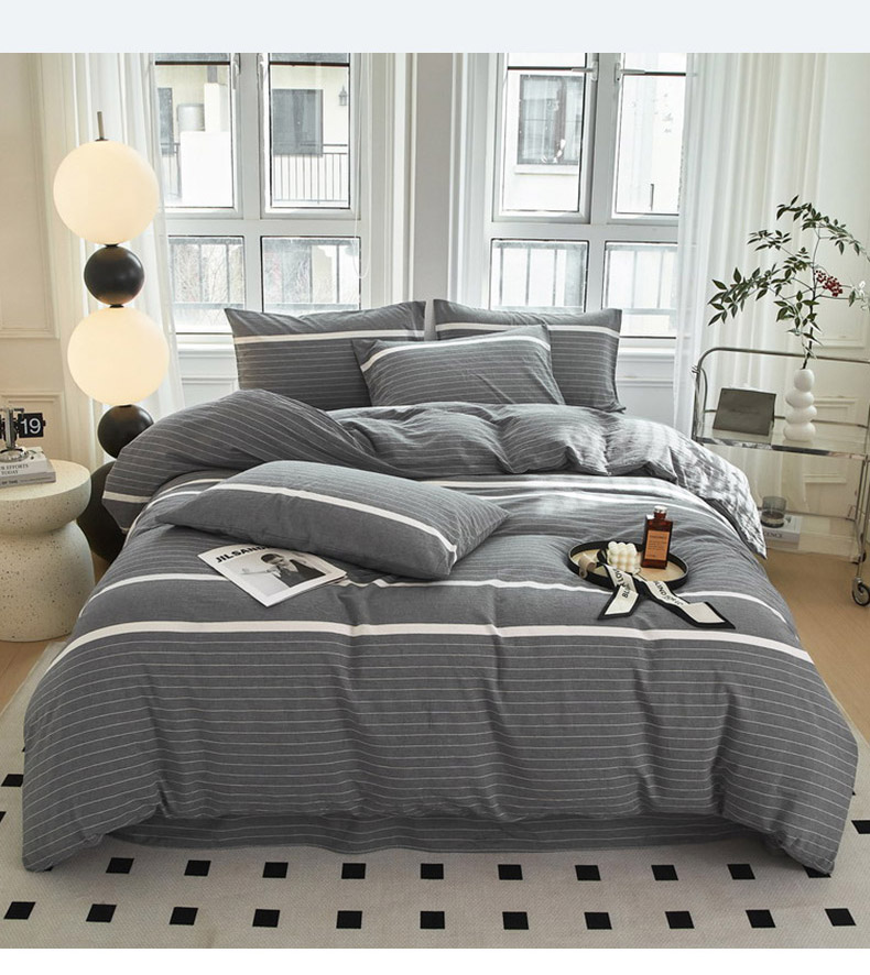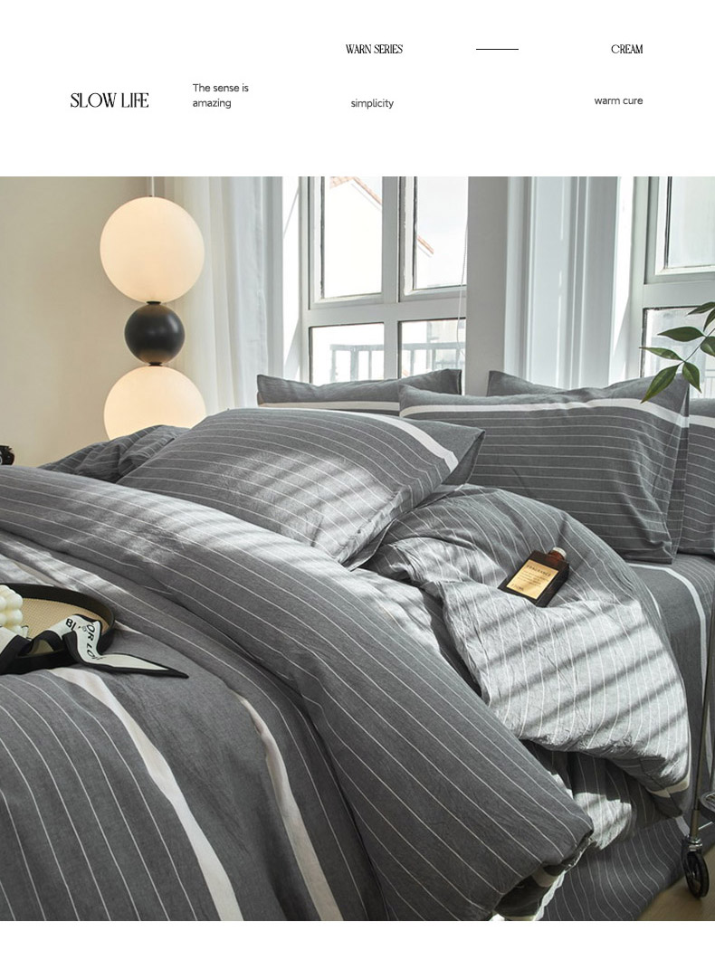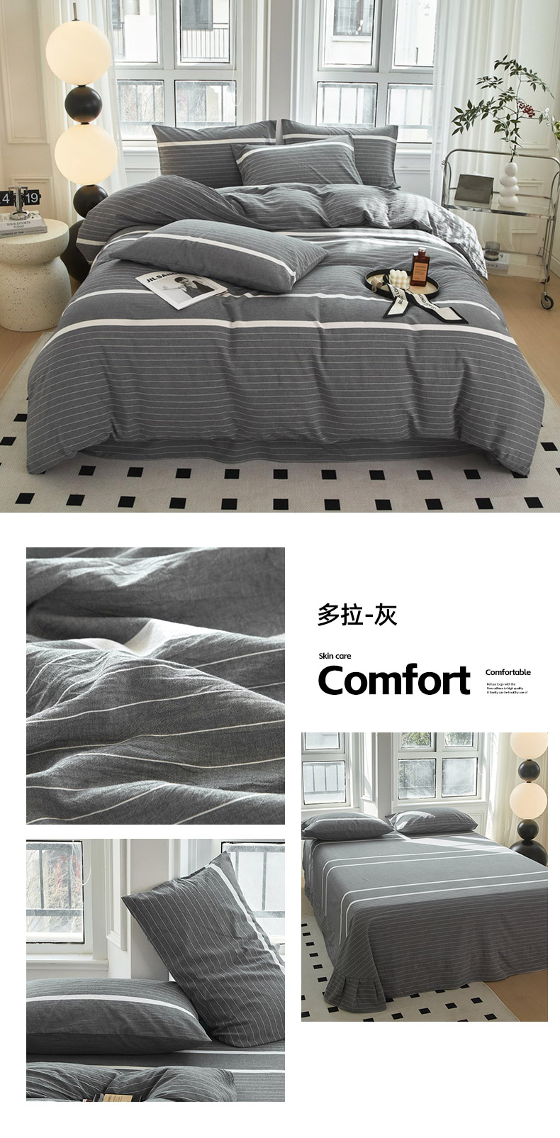 金纱玉纺家纺 2024新款色织全棉水洗棉四件套 多拉-灰
