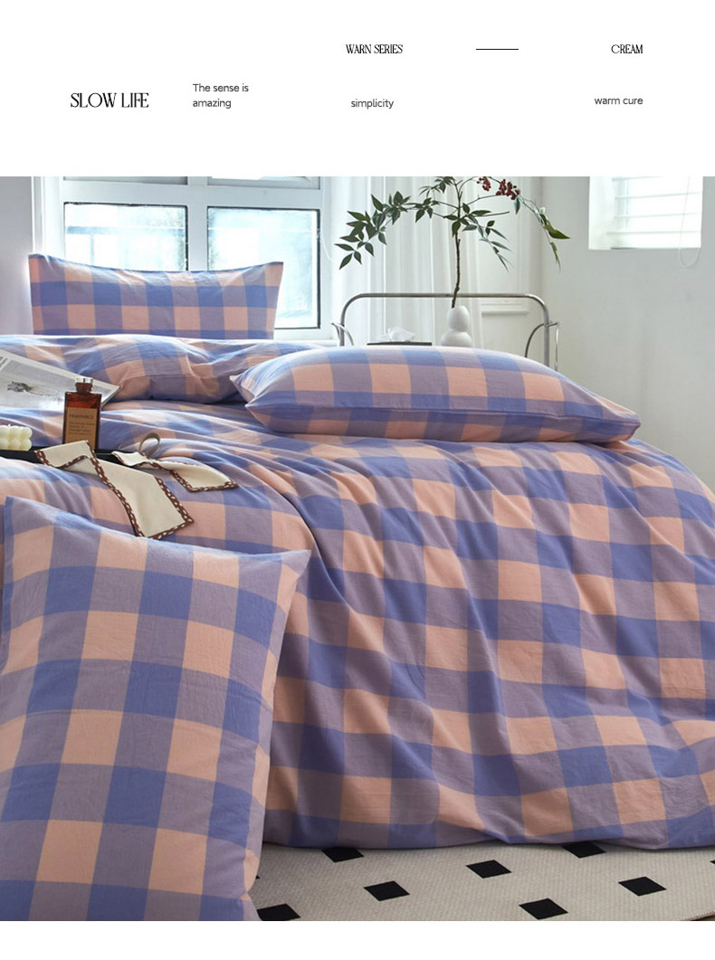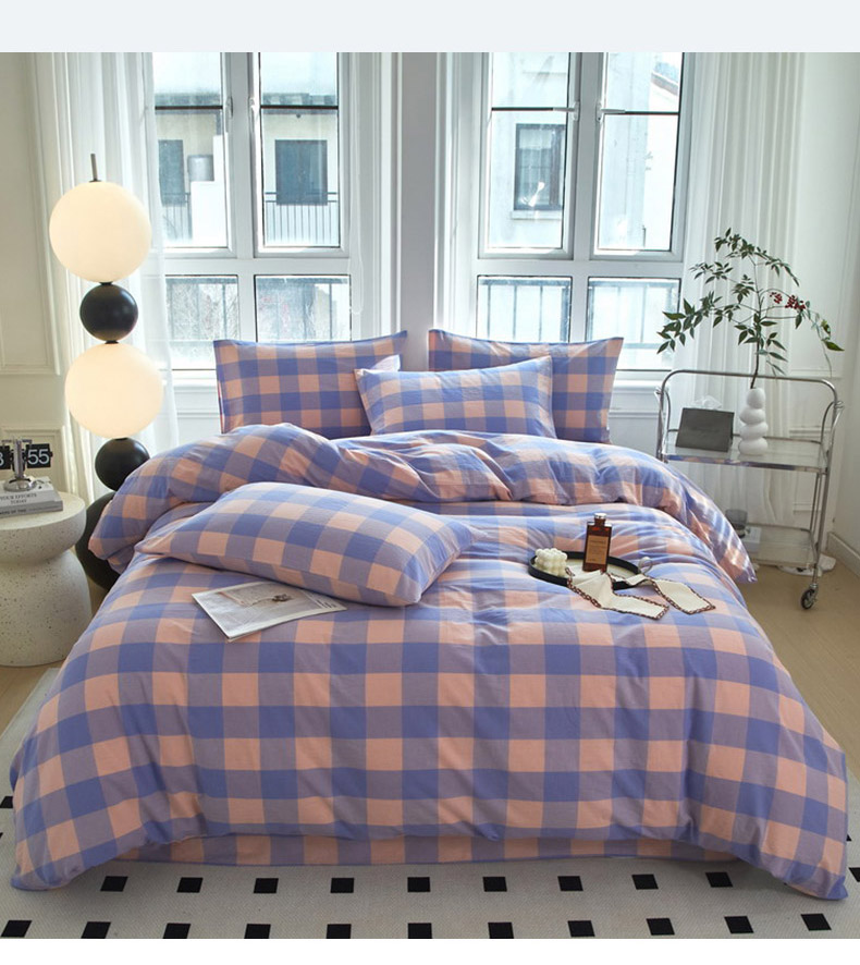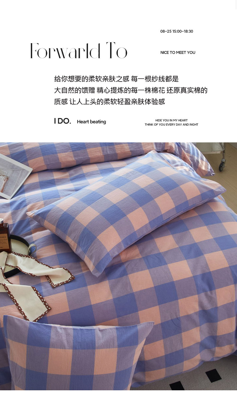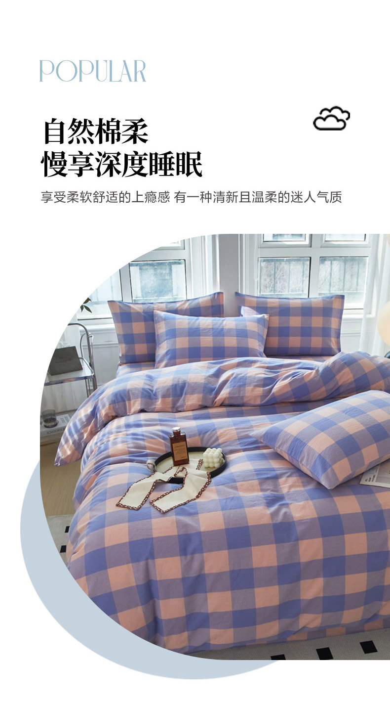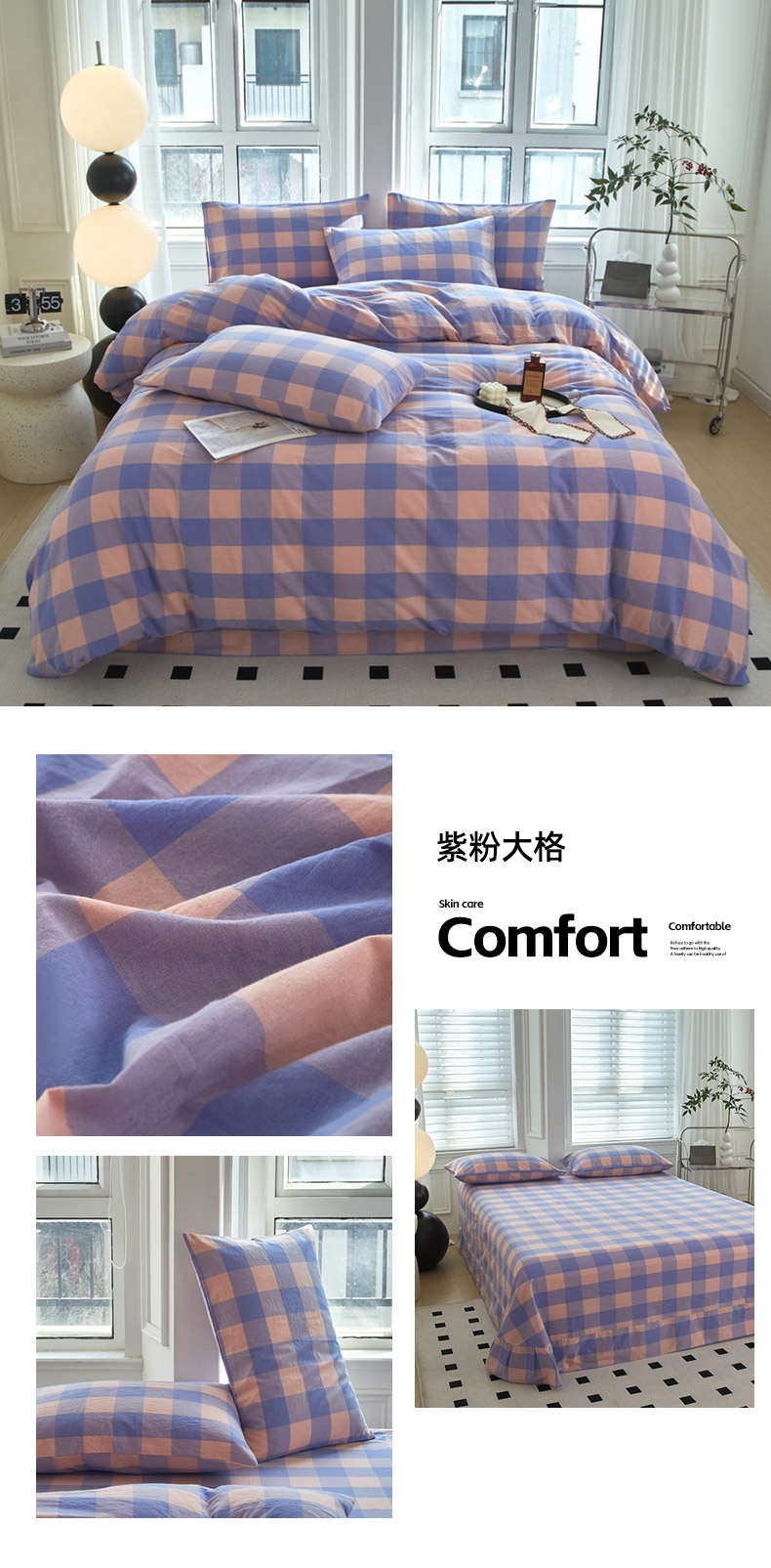 商品名称:金纱玉纺家纺 2024新款全棉水洗棉四件套 紫粉大格
