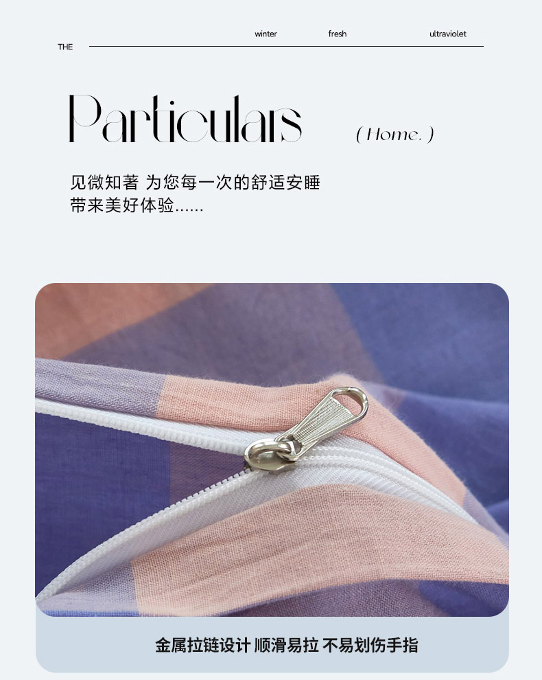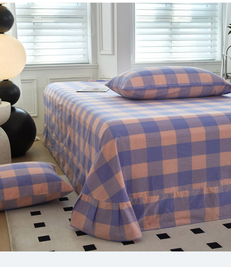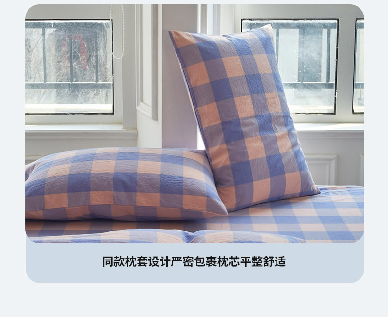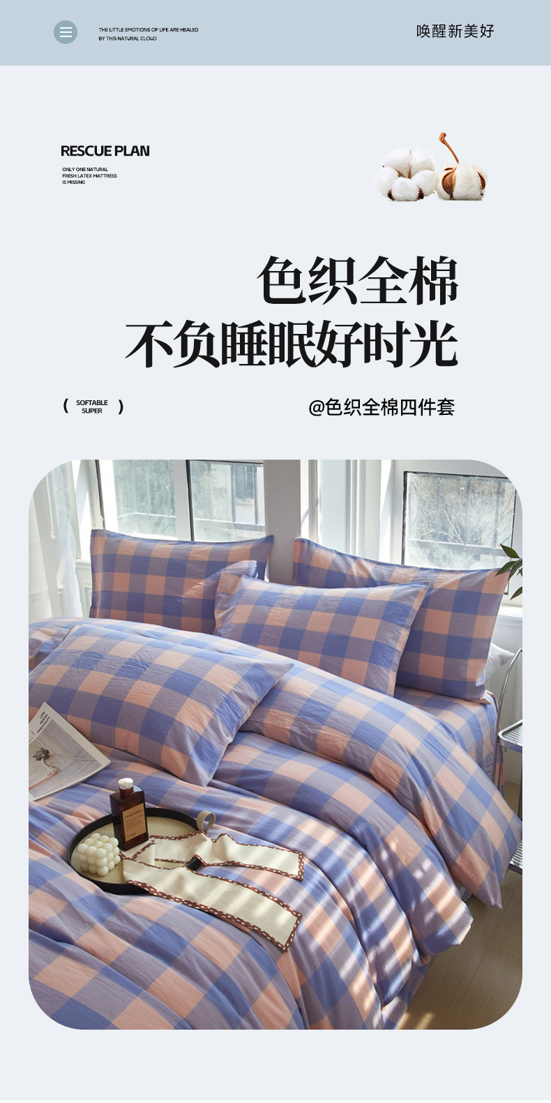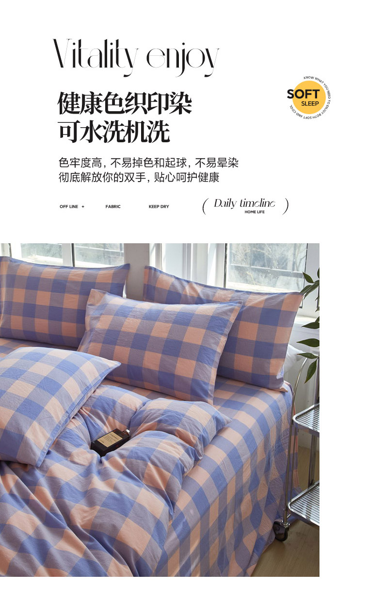 商品名称:金纱玉纺家纺 2024新款全棉水洗棉四件套 紫粉大格