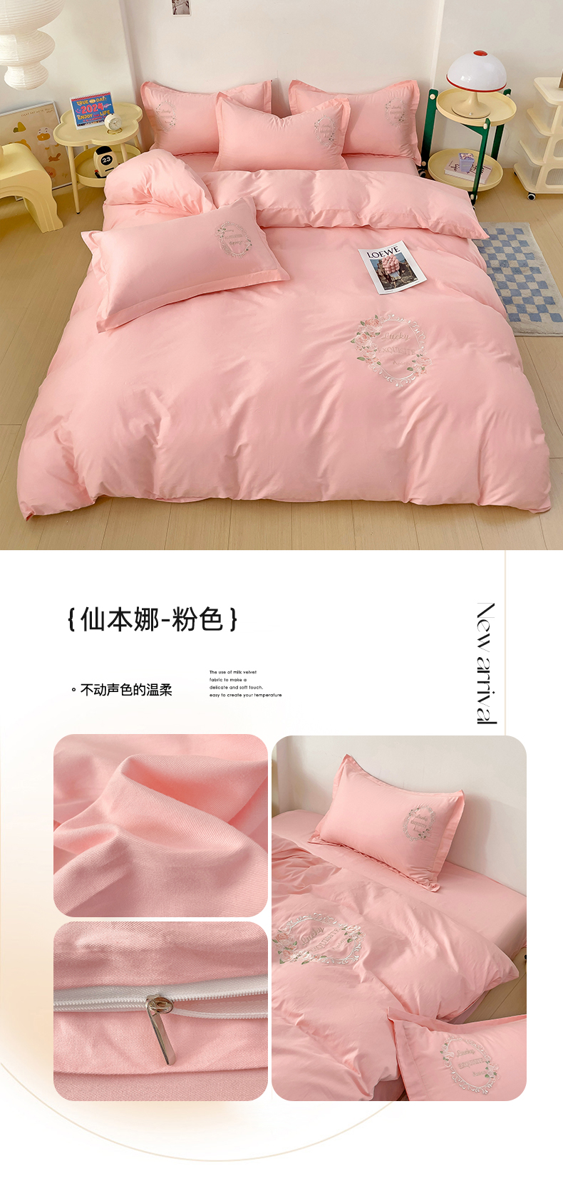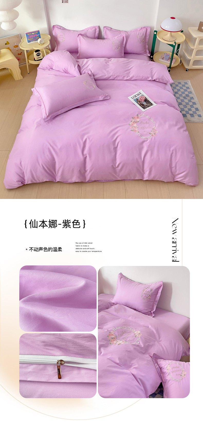(总)云锦2023秋冬新品全棉磨毛绣花四件套缦芯,缦芯粉,缦芯灰,缦芯橘,缦芯蓝,缦芯紫