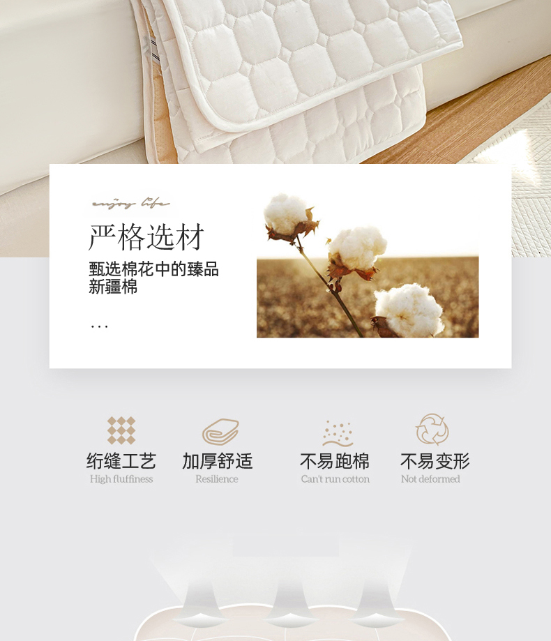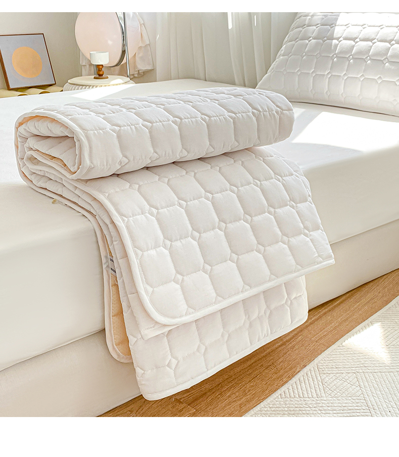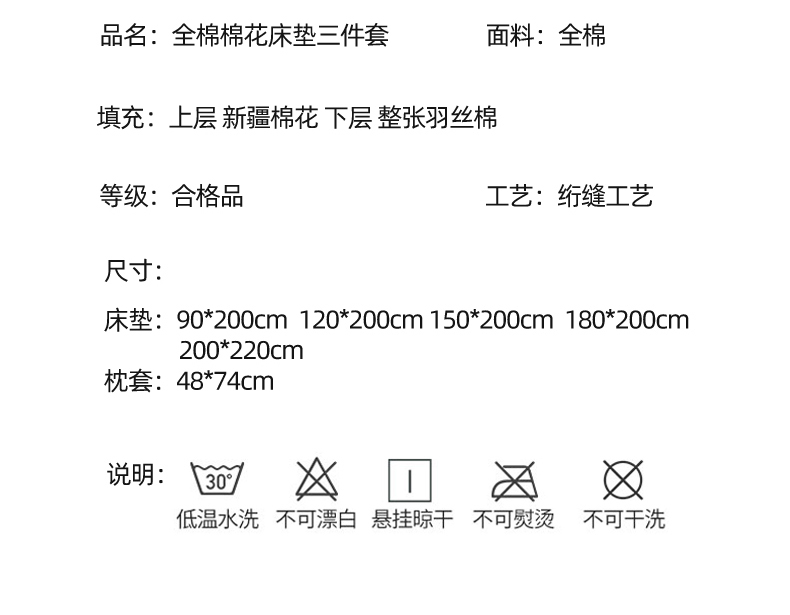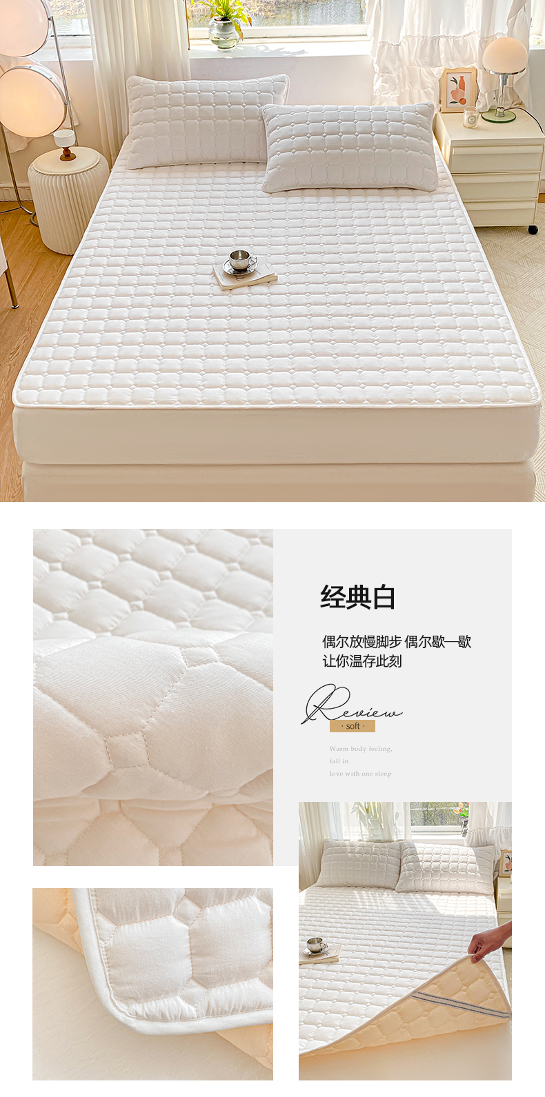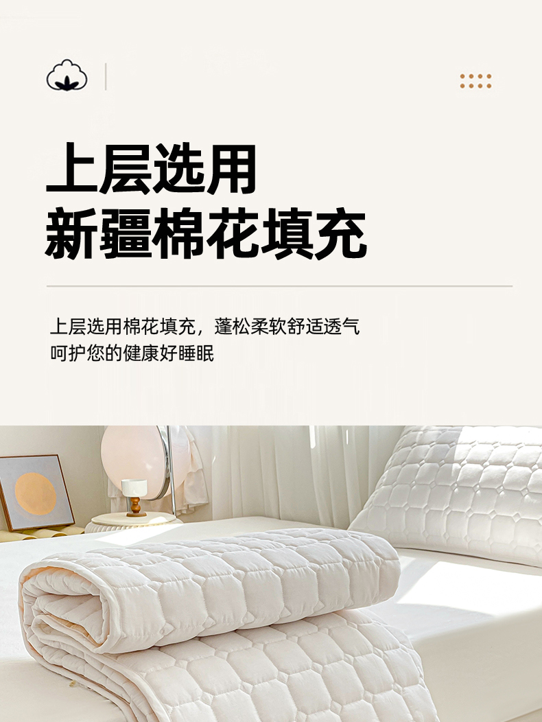 • 91家纺网 家纺一手货源 找家纺 萌飞2024新款全棉新疆棉花夹棉床垫加厚床褥垫被三件套-纯色 经典(白)