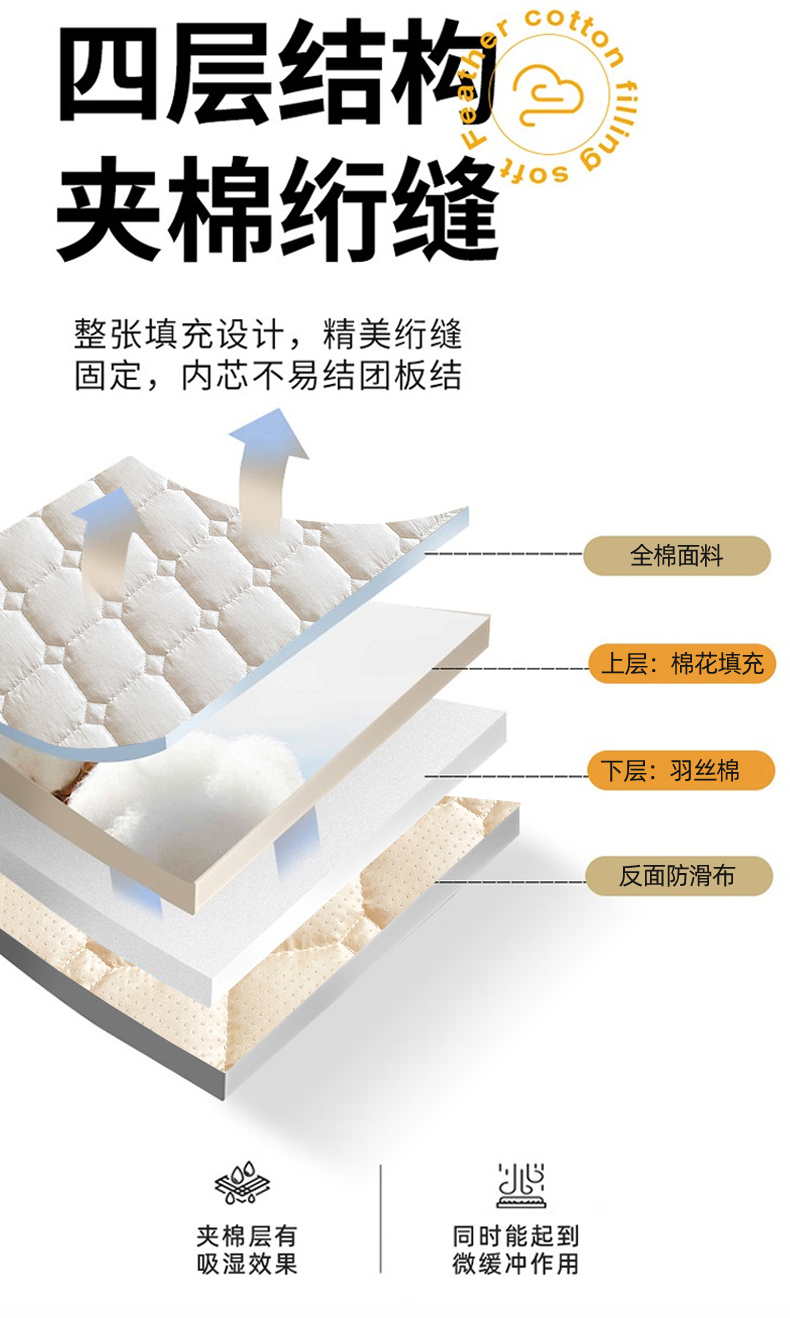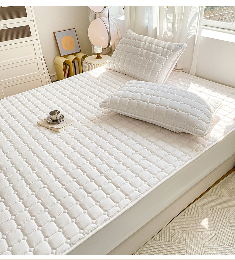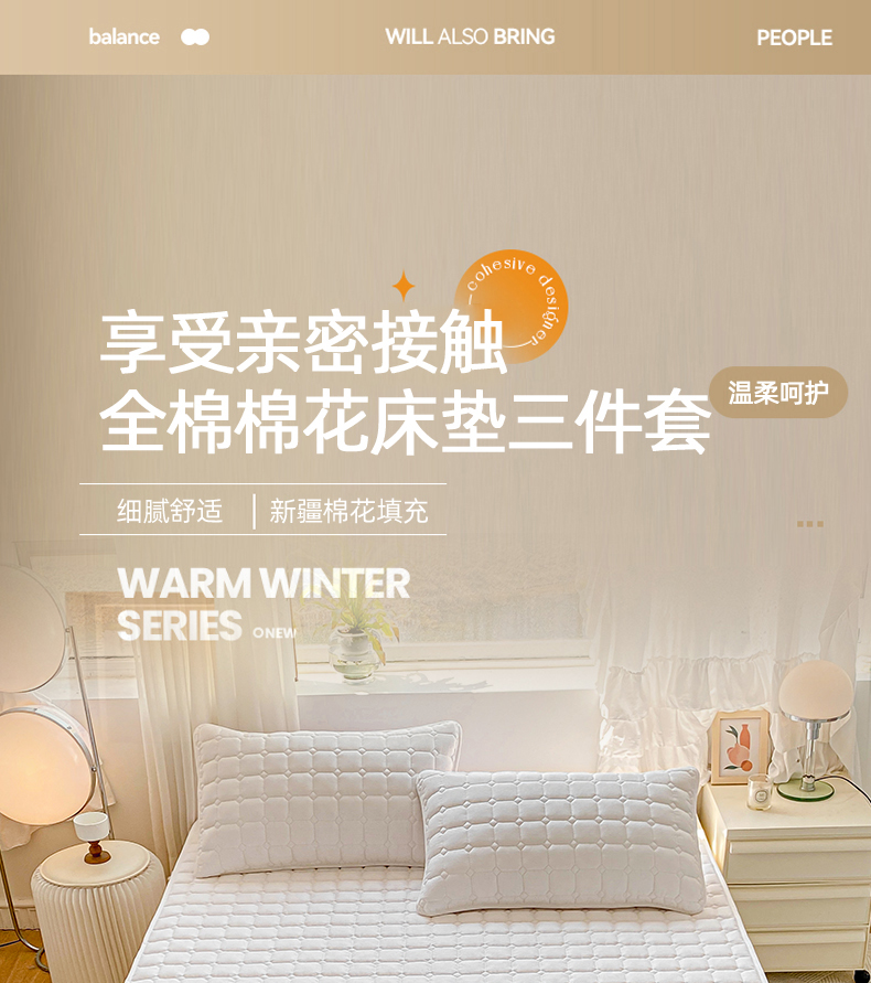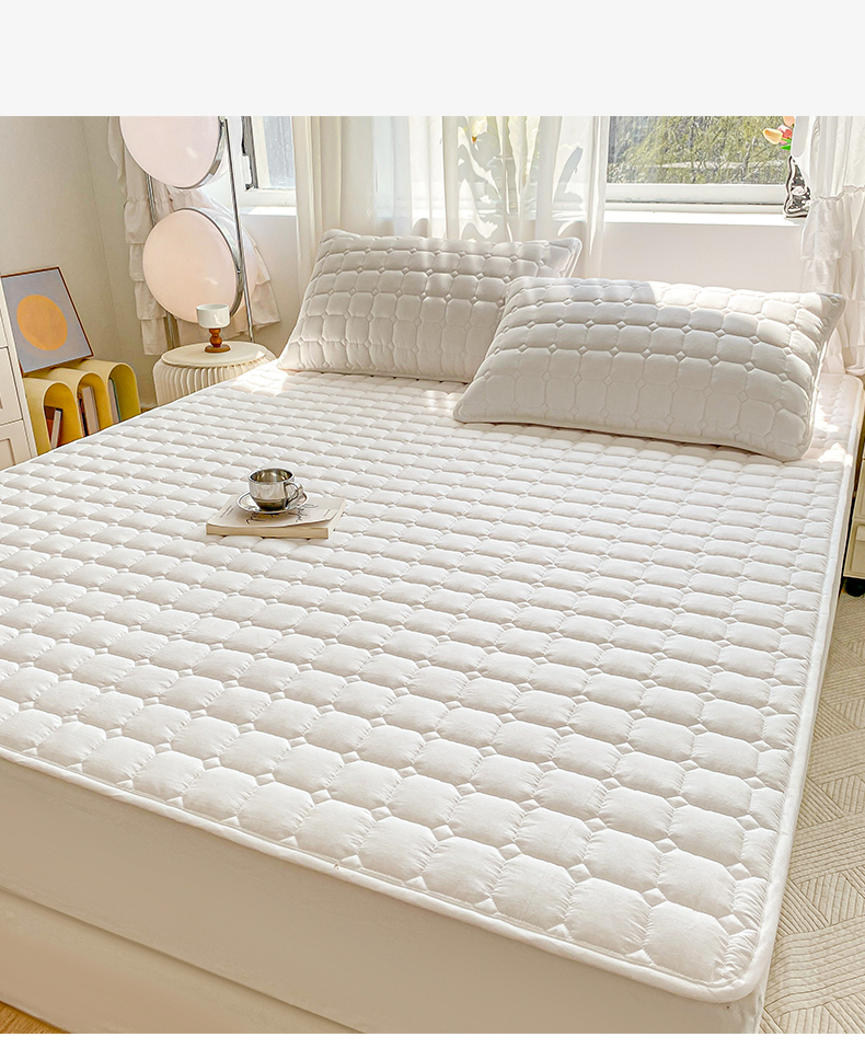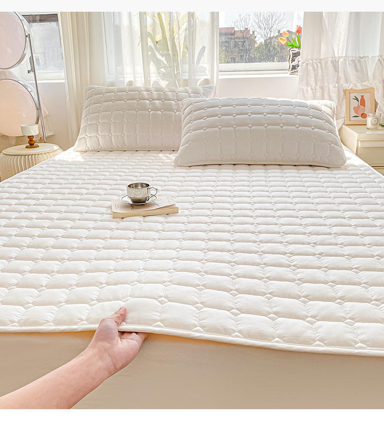 • 91家纺网 家纺一手货源 找家纺 萌飞2024新款全棉新疆棉花夹棉床垫加厚床褥垫被三件套-纯色 经典(白)