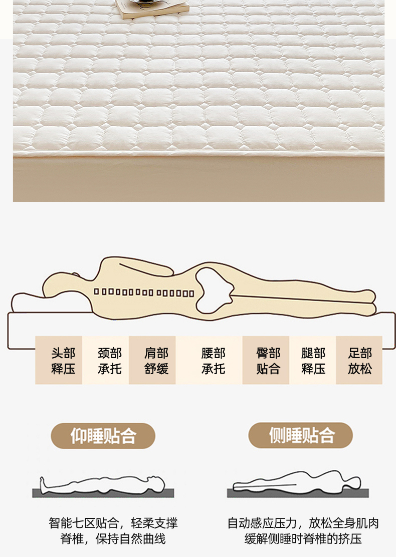 当前位置: 91家纺网 > 商品网购 > 床垫/床褥 > 萌飞2024新款全棉新疆棉花夹棉床垫加厚床褥垫被三件套-纯色 经典(白)