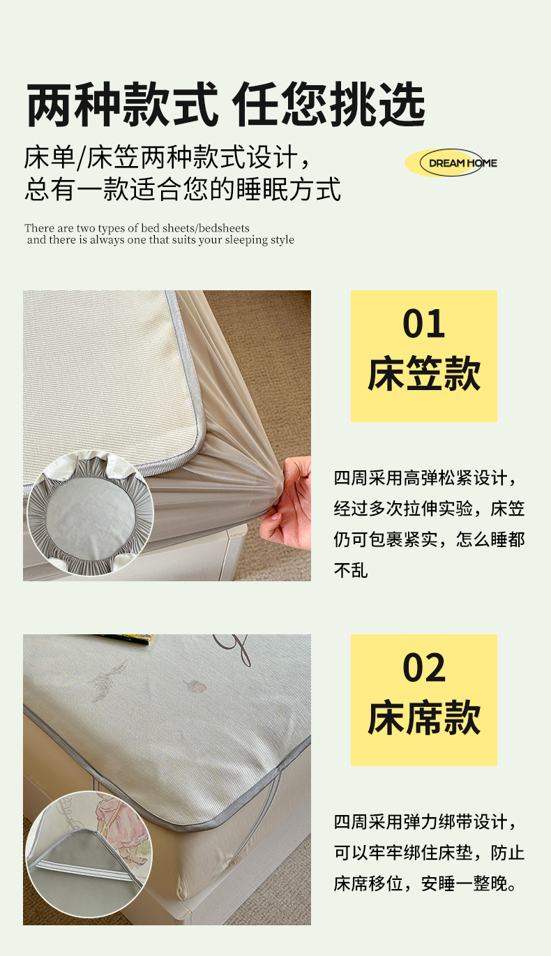 (总)萝莉家纺 2024新款大版冰丝凉席床席床笠款