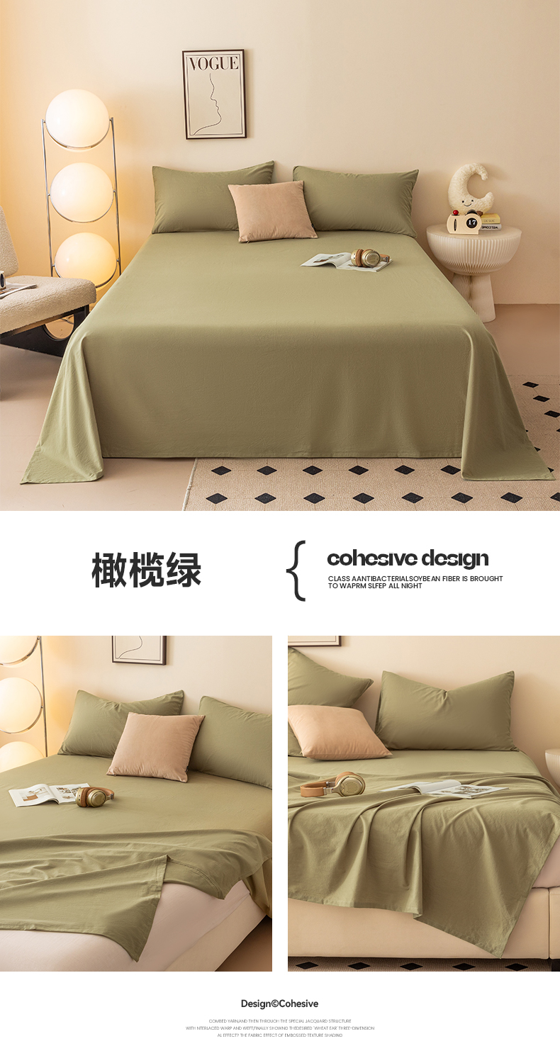 商品名称:寐眠 2024新款全棉水洗棉床单床笠单品-单床单 橄榄绿
