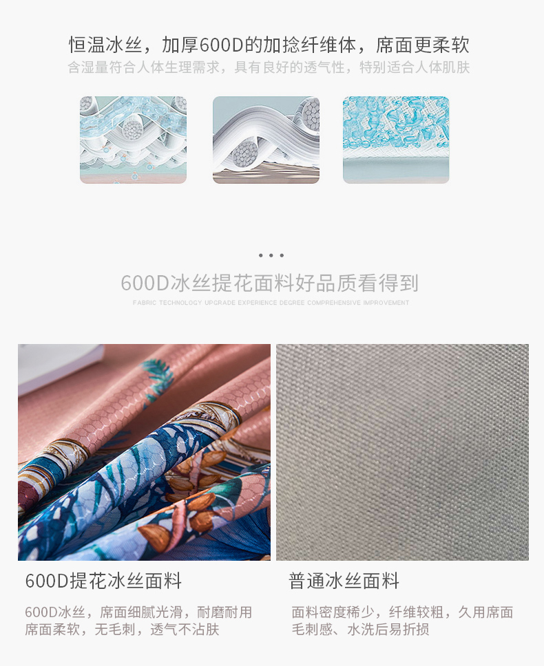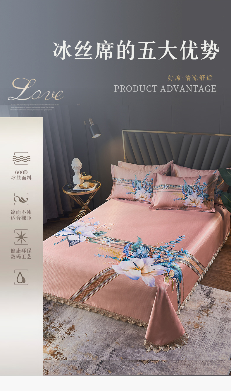 商品名称:其奥家纺 2025新款900d窝蜂冰丝凉席三件套 俏丽花姿