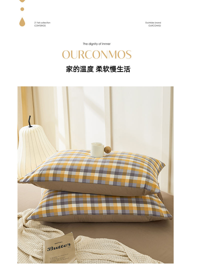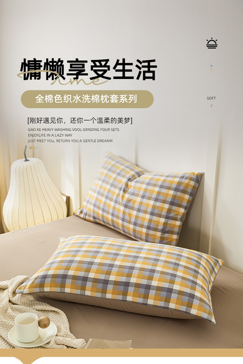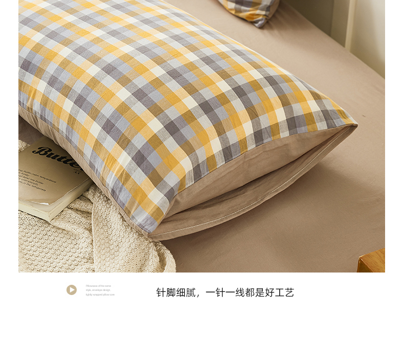 凡客家居 2024新款全棉色织水洗棉枕套 简欧—灰