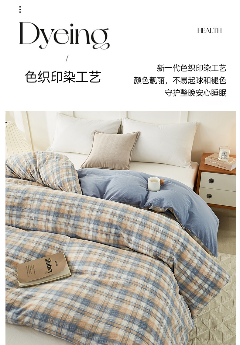(总)凡客家居 2024新款全棉色织水洗棉被套学生宿舍