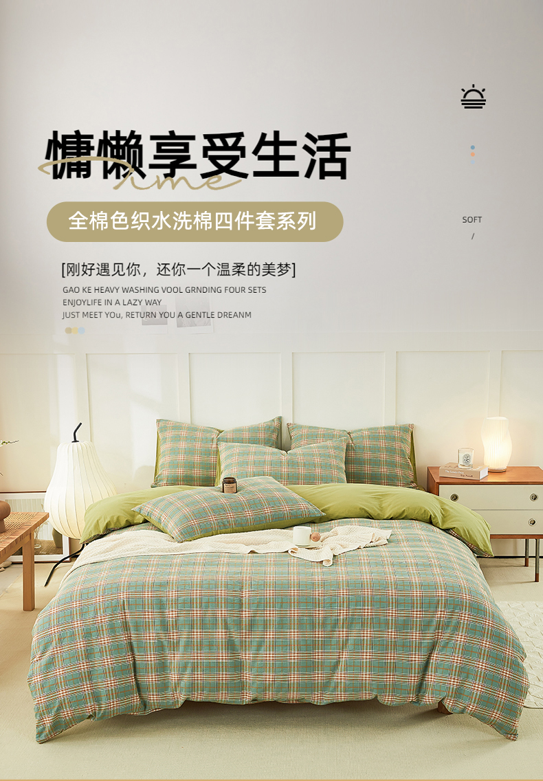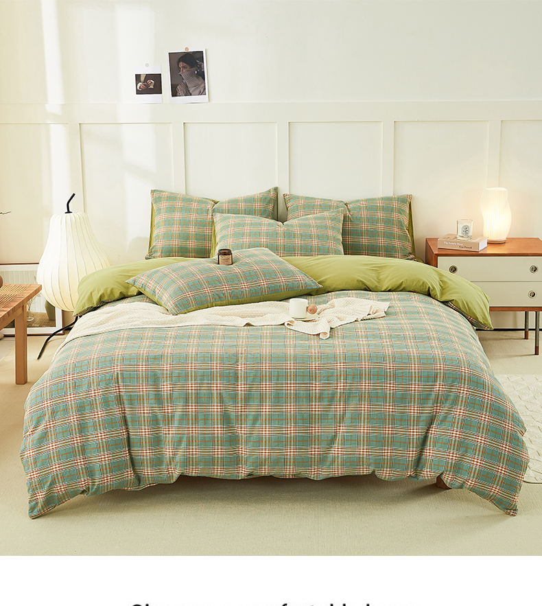 当前位置: 91家纺网 > 商品网购 > 床品套件 > 四件套 > 水洗棉四件套 > 凡客家居 全棉色织水洗棉四件套学生宿舍三件套 轻萝—绿