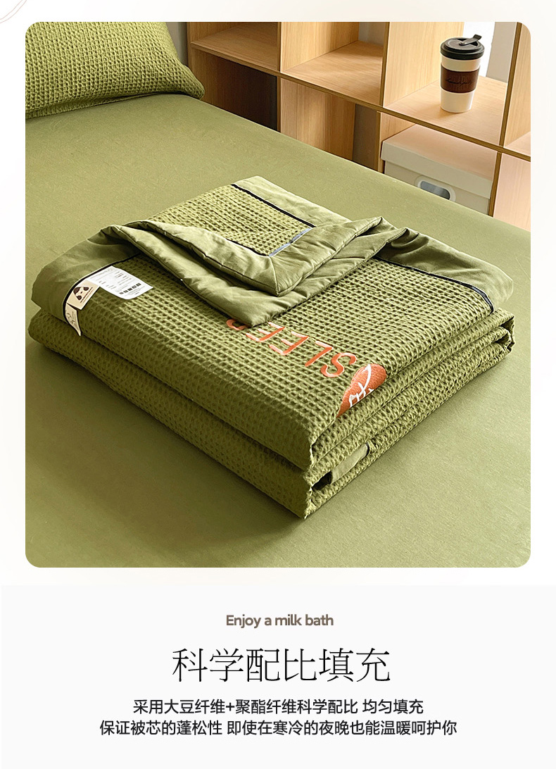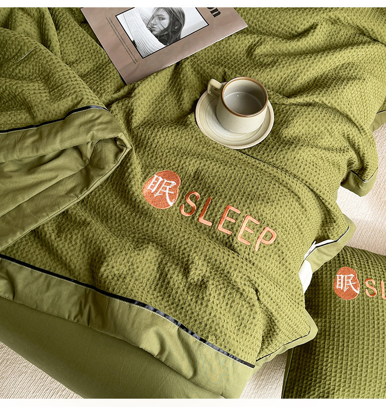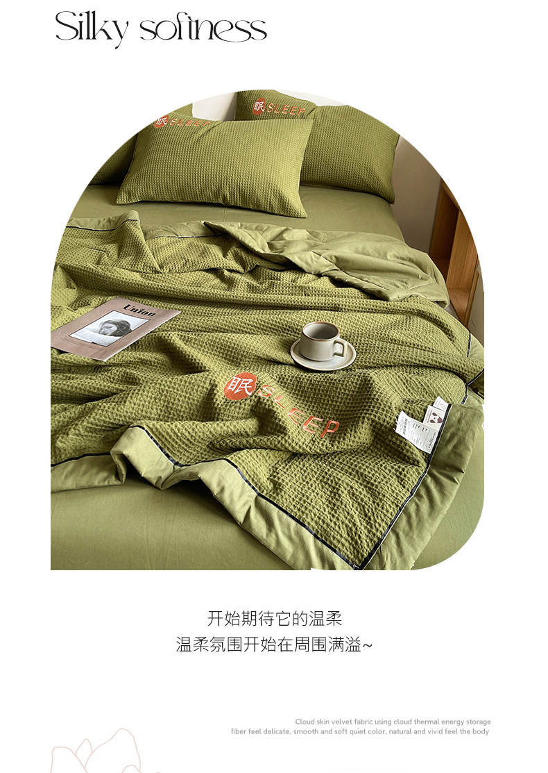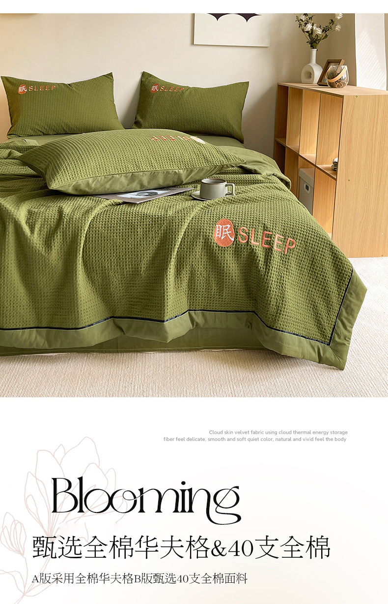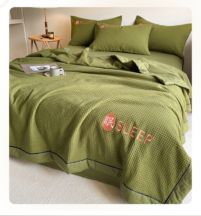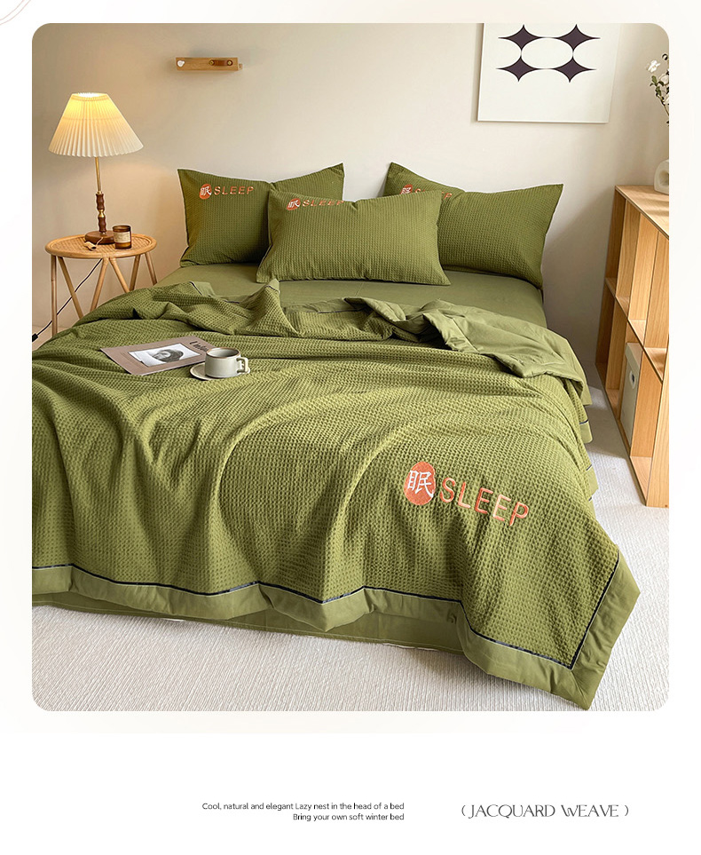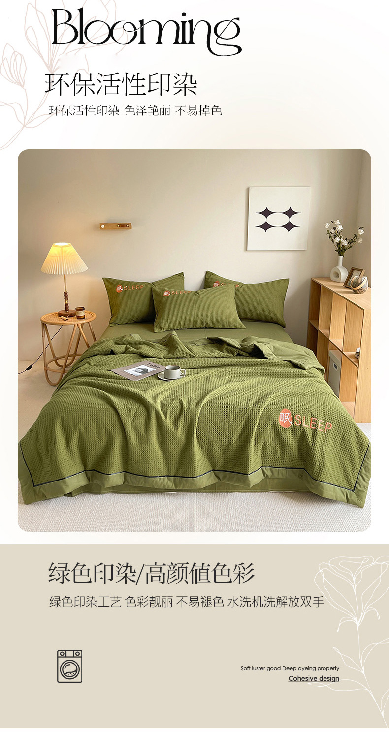 眠博士 2024新款A类全棉华夫格拼角夏被套件系列 夏被-松绿