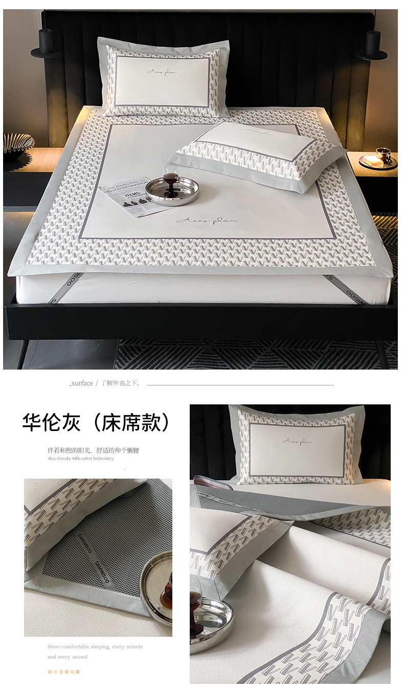 (总)三味舒屋 凉感抗菌防螨印花冰丝养生席_刺绣系列,奢路蓝 床席,奢路蓝 床笠,奢路米 床席,奢路米 床笠
