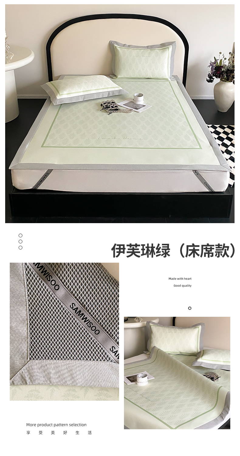 商品名称:三味舒屋 三味舒屋 2025新款凉感抗菌防螨印花冰丝养生席手绘系列床席款【简欧】 伊芙琳绿