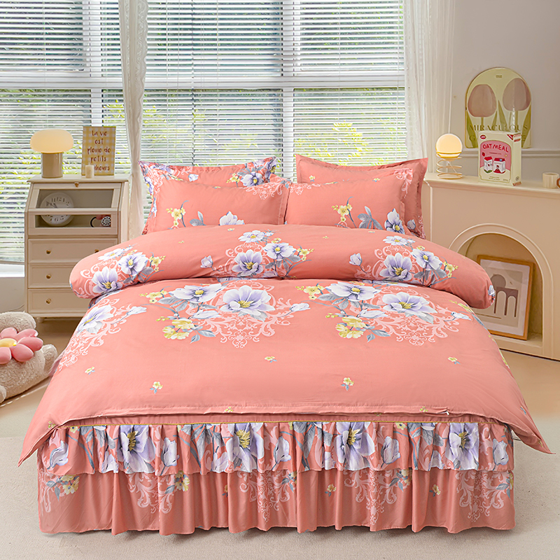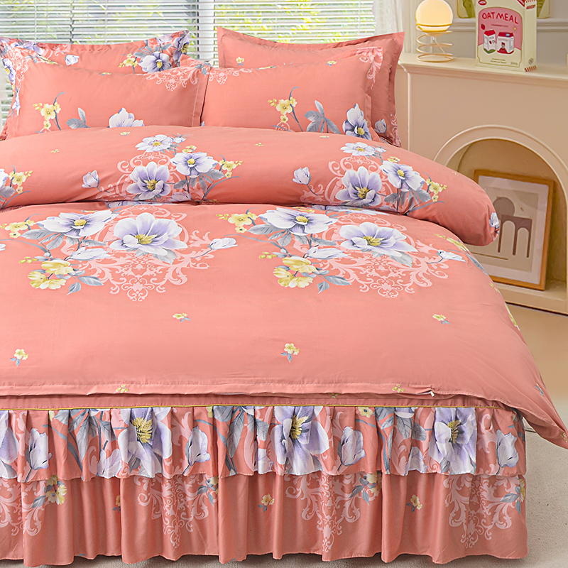 当前位置: 91家纺网 > 商品网购 > 床品套件 > 四件套 > 其它四件套 > 小雨家纺 2026新款芦荟棉床裙四件套 花枝招展-桔