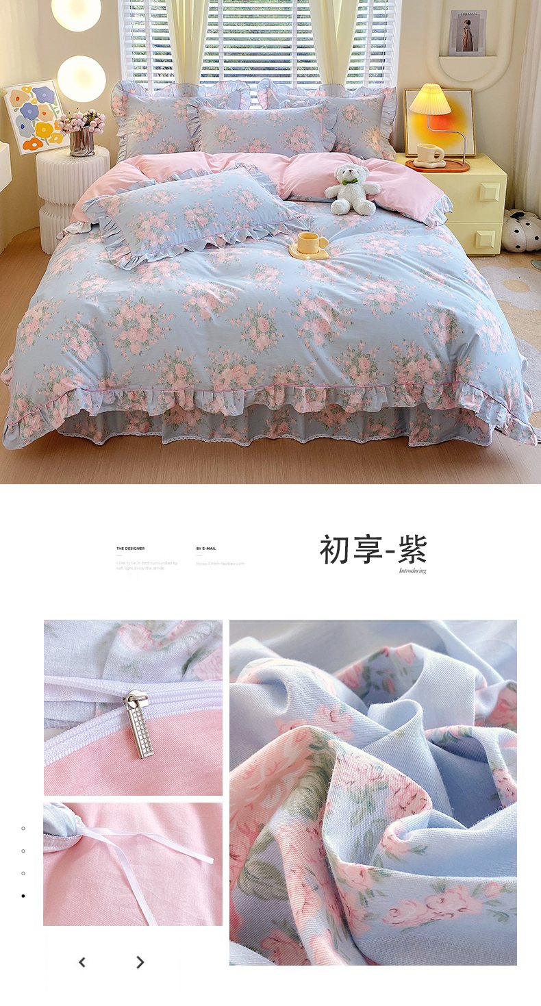 商品名称:宝齐莱2024新款全棉13372韩版印花四件套单品系列-单被套 初享-紫