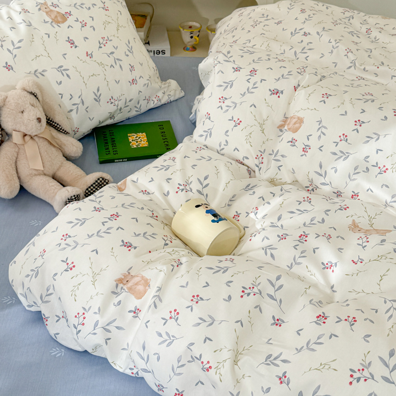 商品名称:呗旺鹿 2024新款小清新13372全棉四件套纯棉四件套学生三件套 田园兔