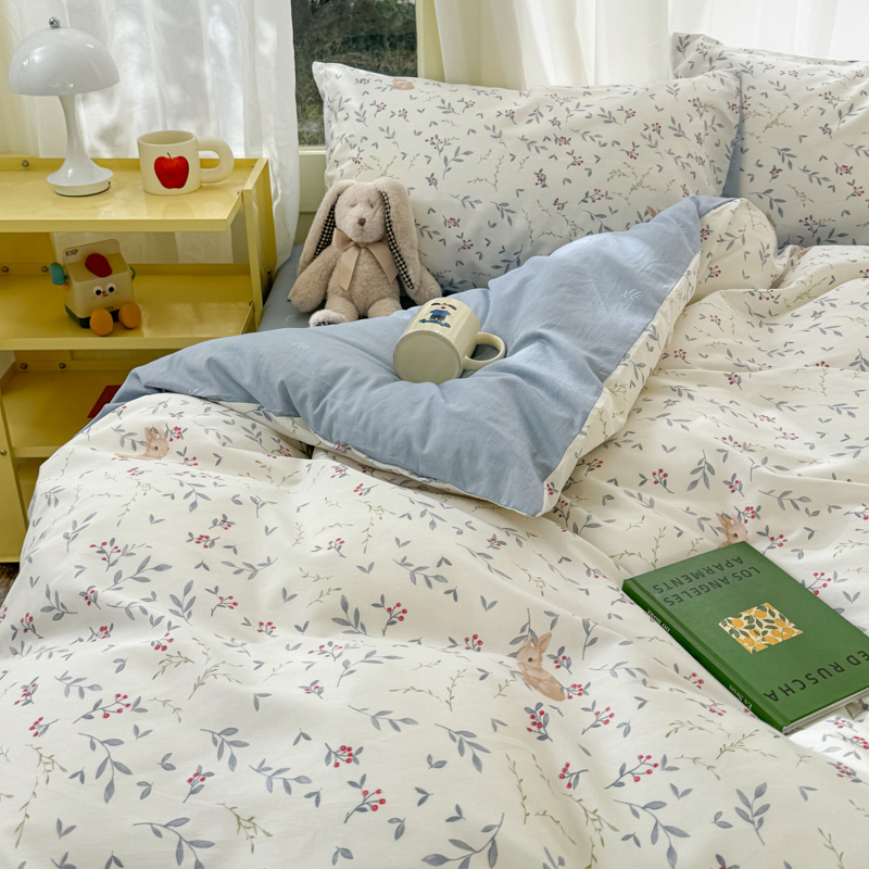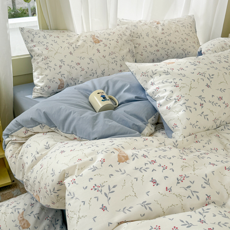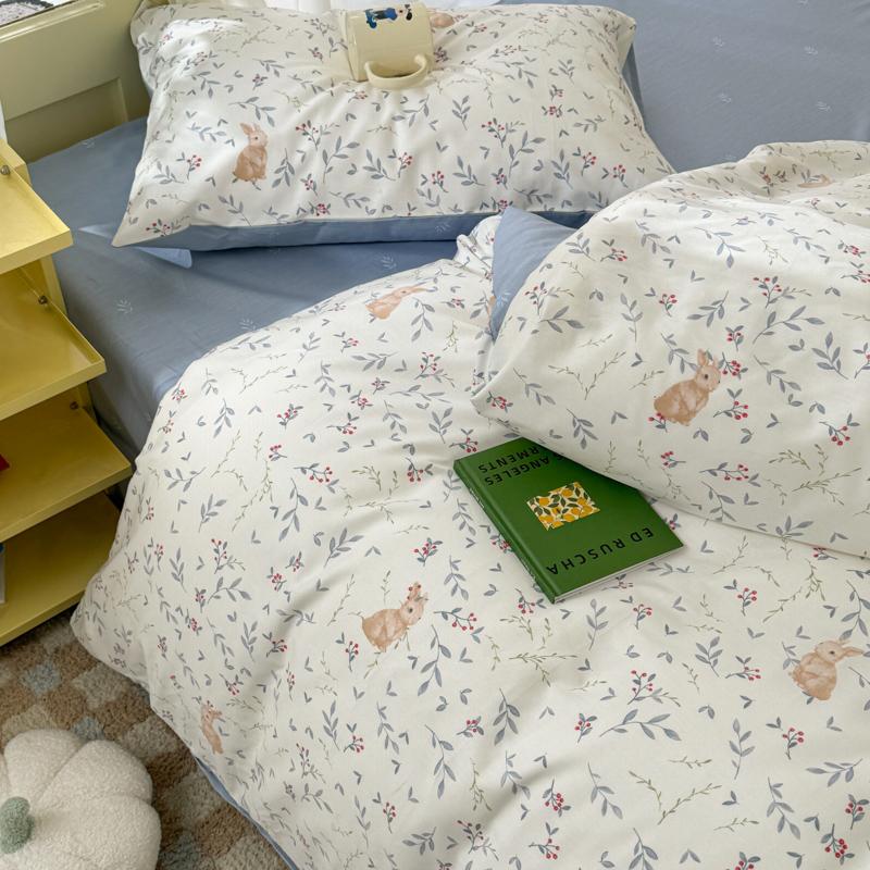 呗旺鹿 2024新款小清新13372全棉四件套纯棉四件套学生三件套 田园兔