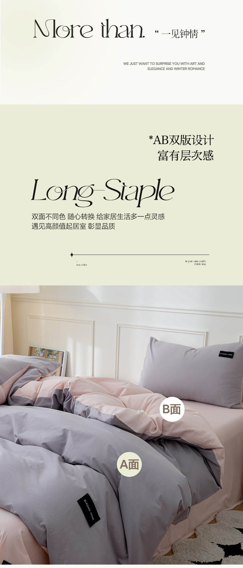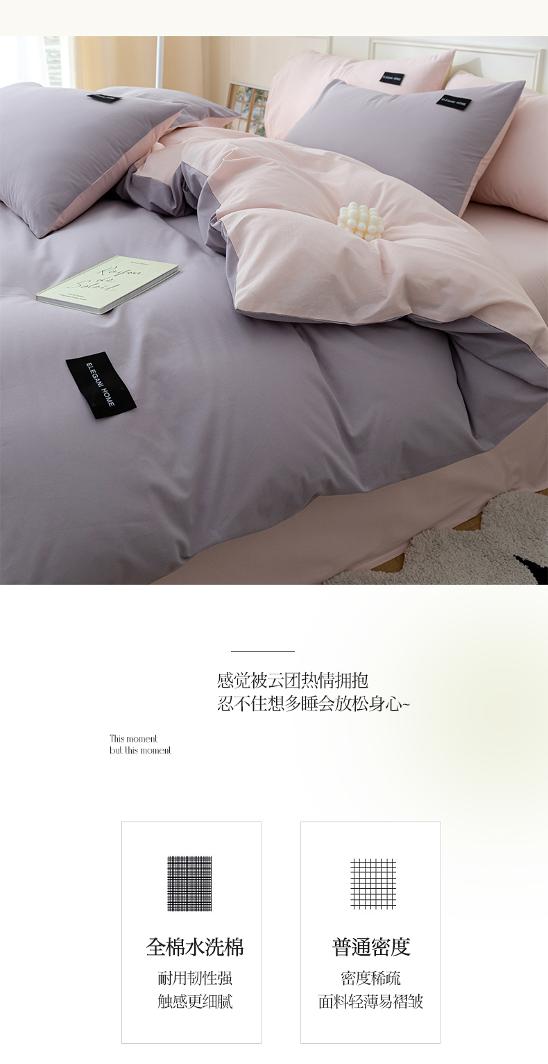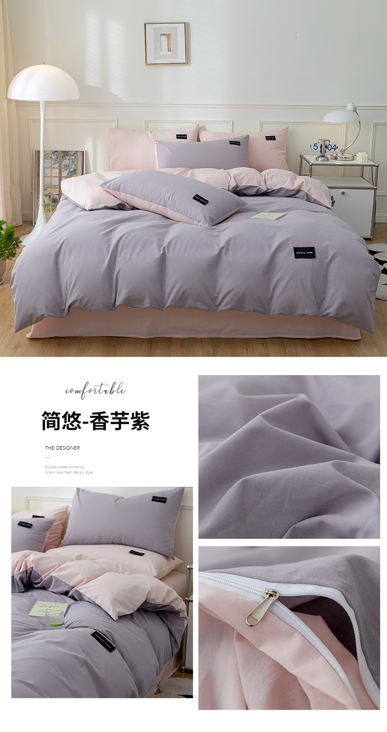 商品名称:九沐良品 新款纯色双拼四件套 简悠-香芋紫