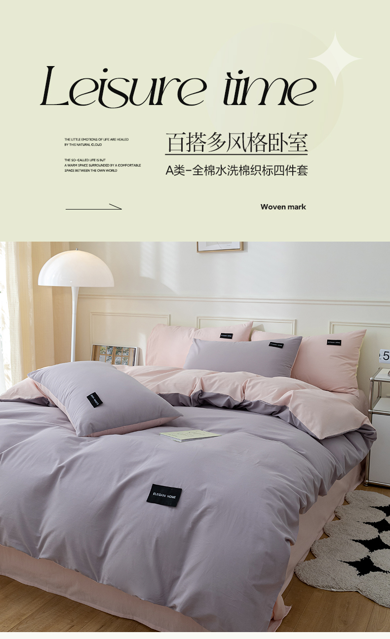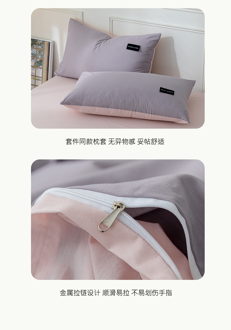 九沐良品 新款纯色双拼四件套 简悠-香芋紫