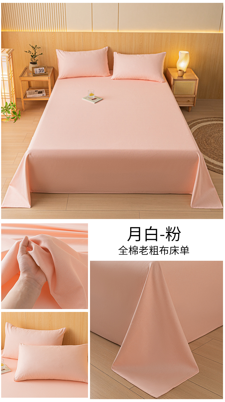 商品名称:鑫钰 2024新款全棉老粗布床单 月白-粉