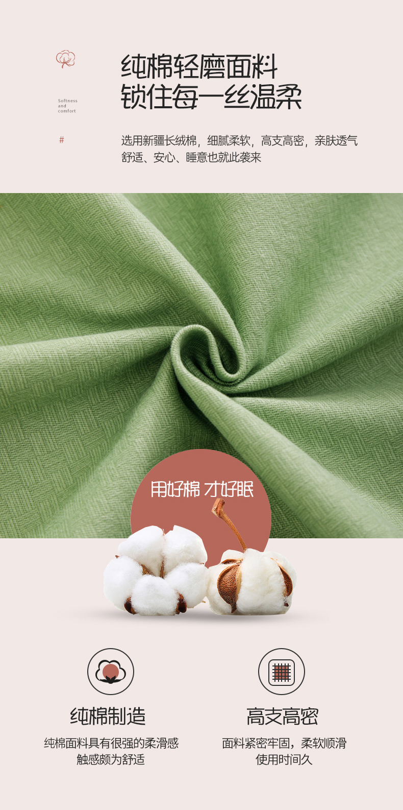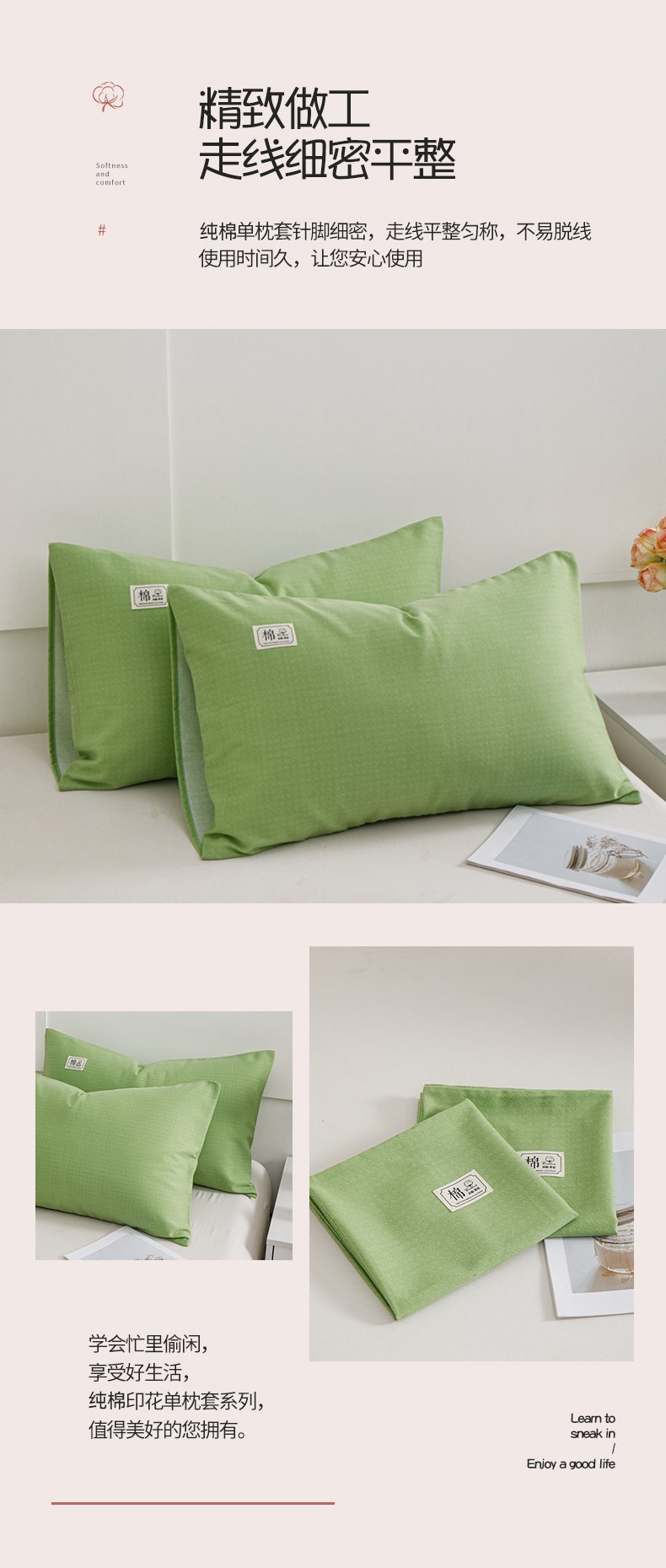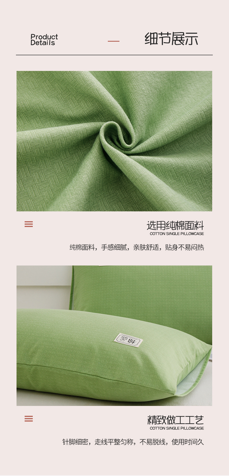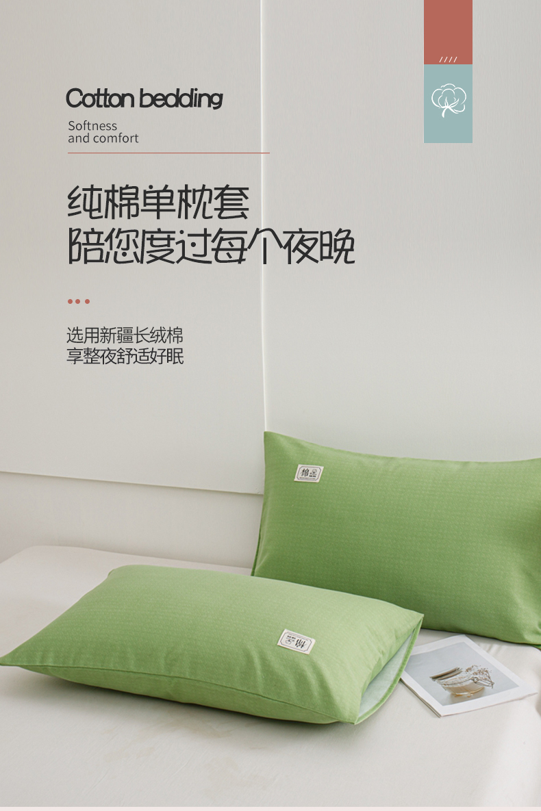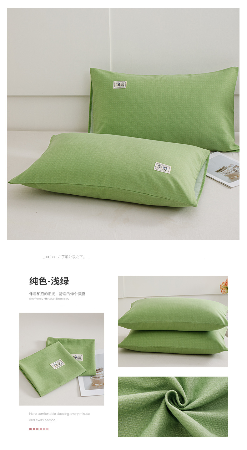 商品名称:宝时兰 2024新款纯色单枕套全棉加厚生态喷气磨毛纯棉口袋枕套 纯色-浅绿