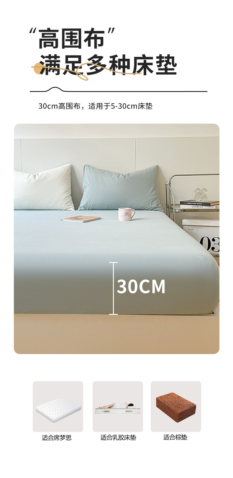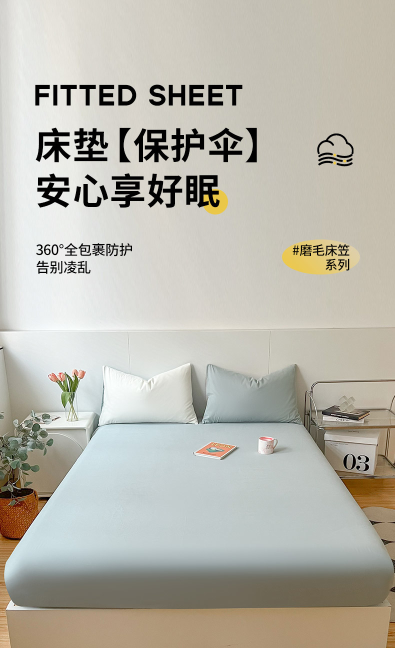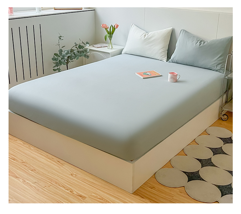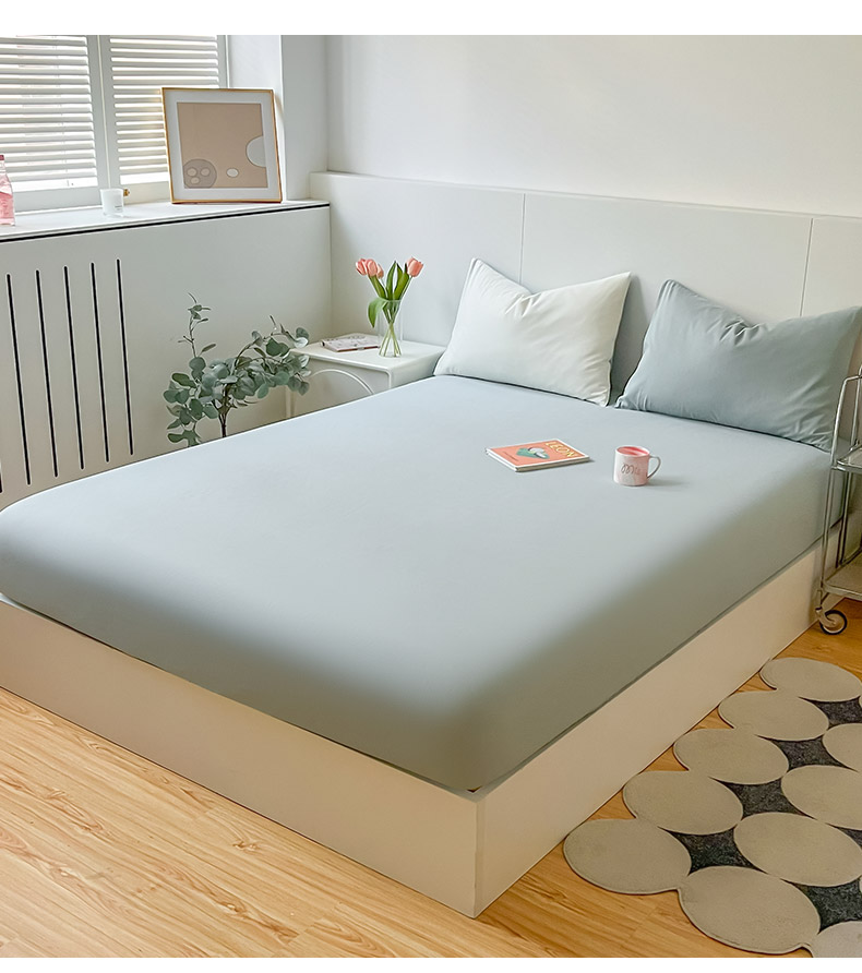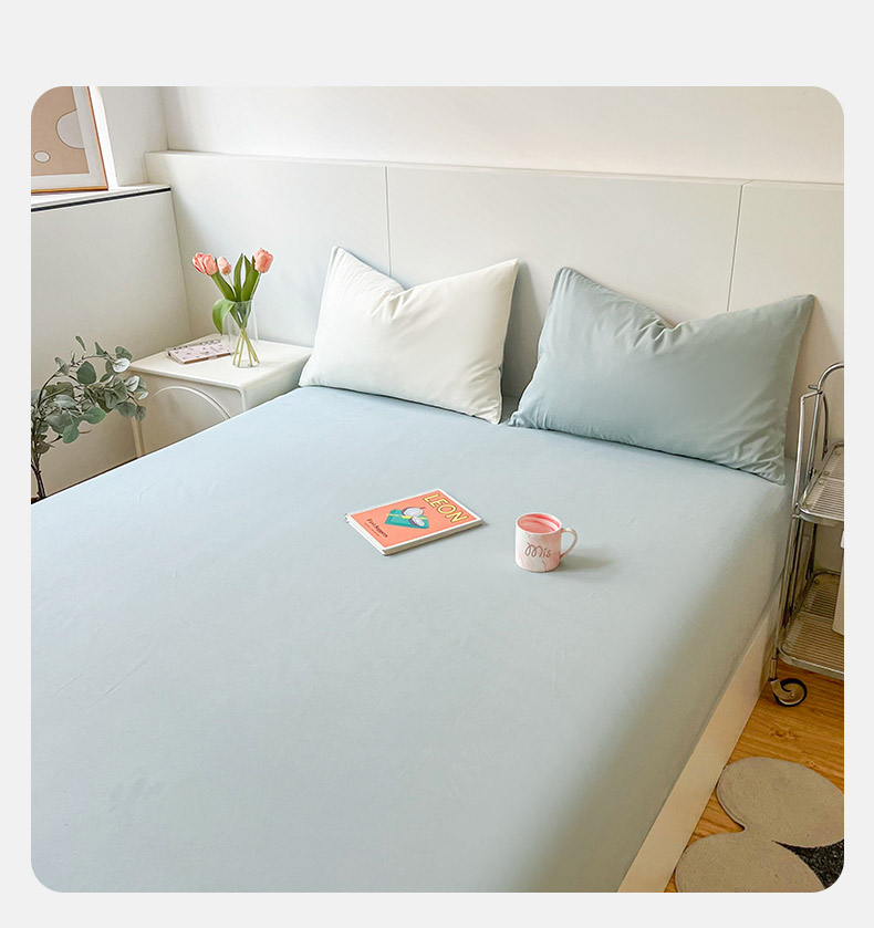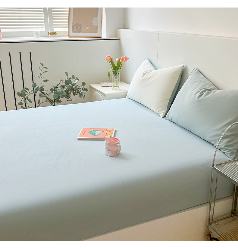 米粒家纺 2024新款纯色磨毛床笠 天蓝